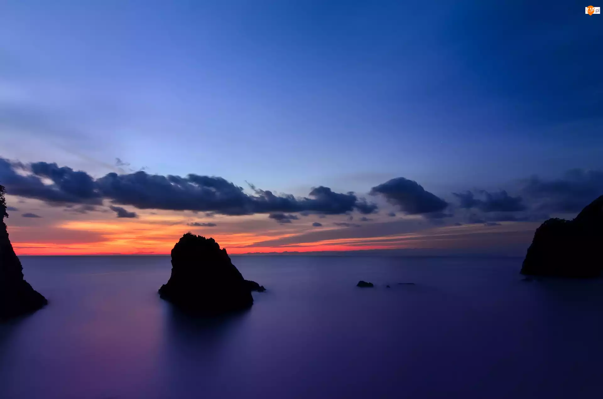 Zmierzch, Skały, Chmury, Morze