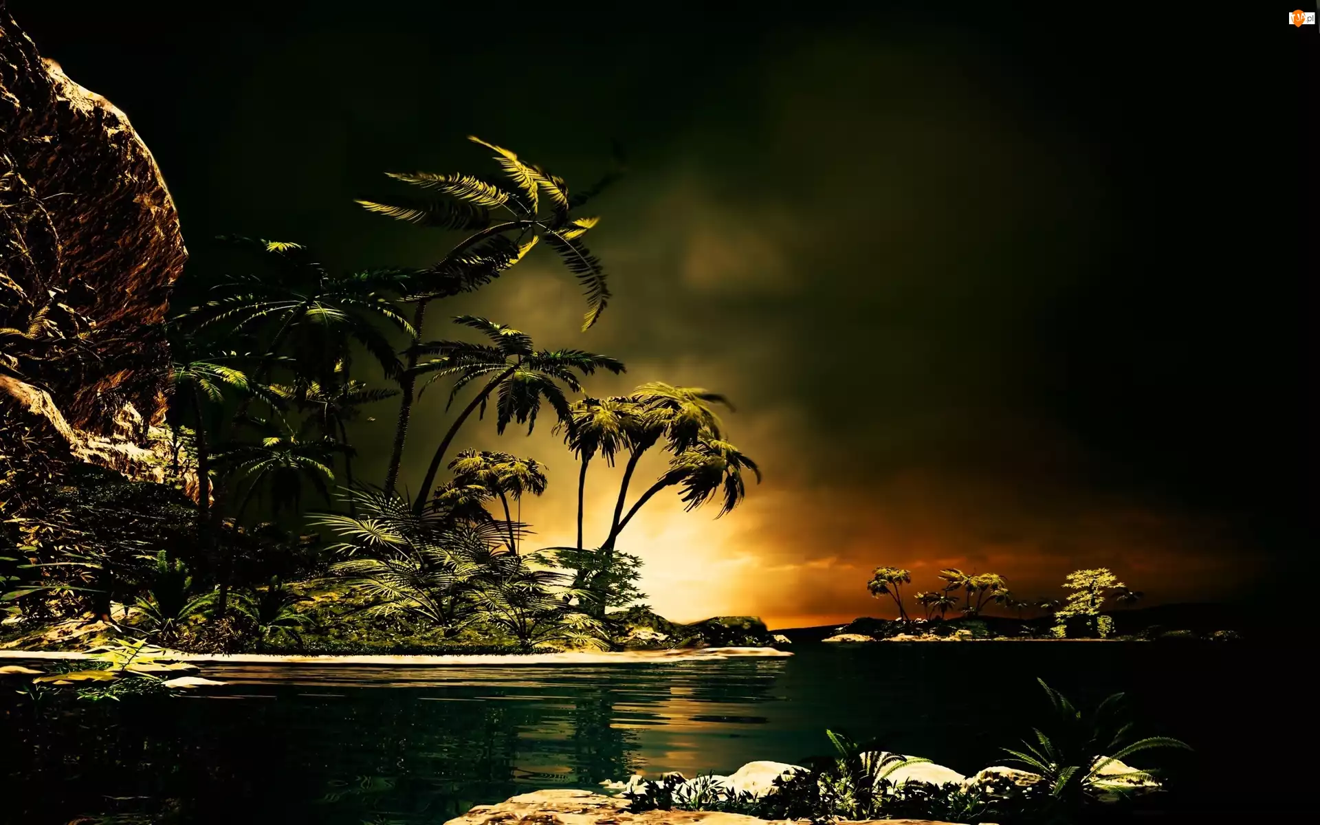 Zmrok, Jezioro, Palmy