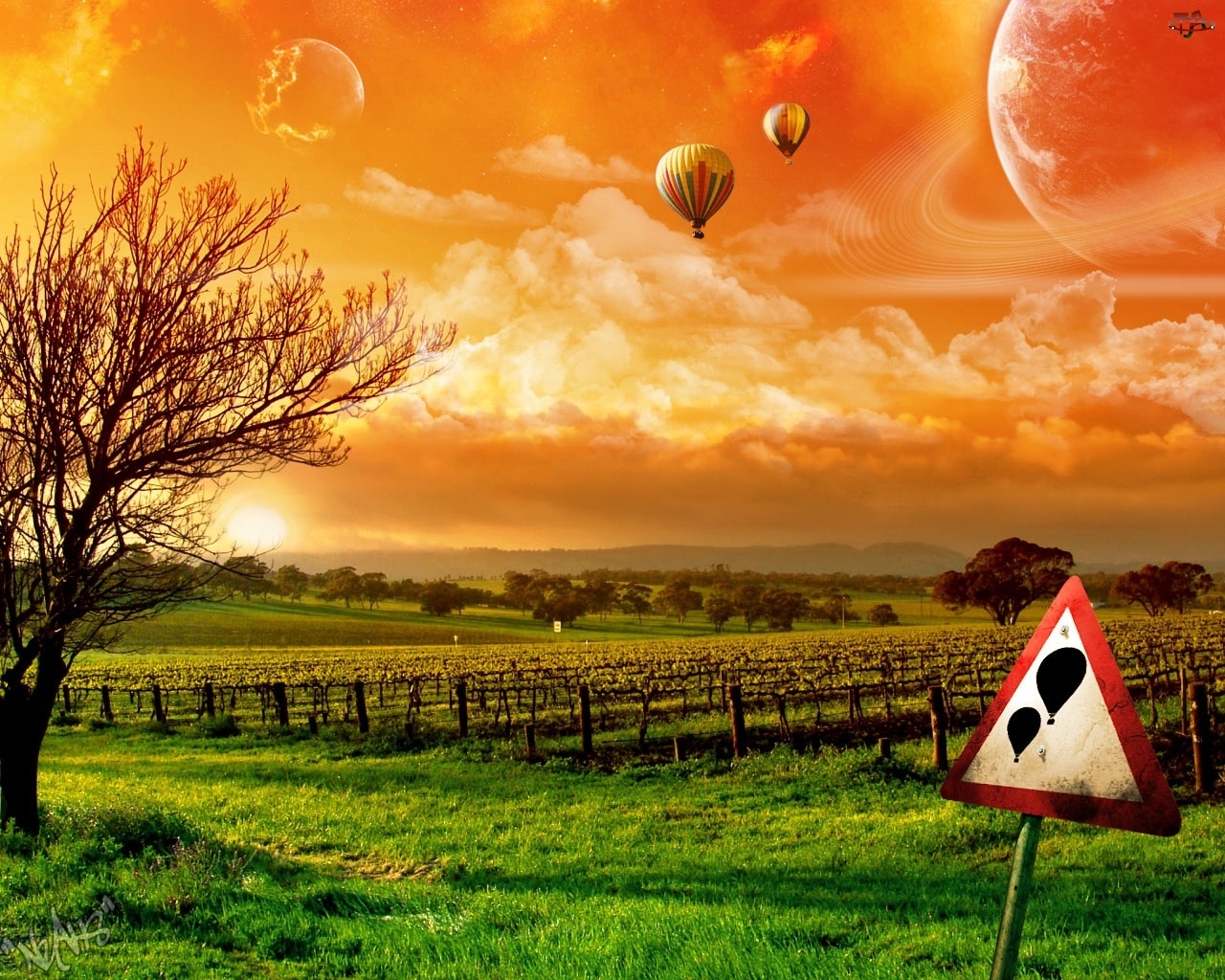Znak, Zachód, Pola, Słońca, Balon