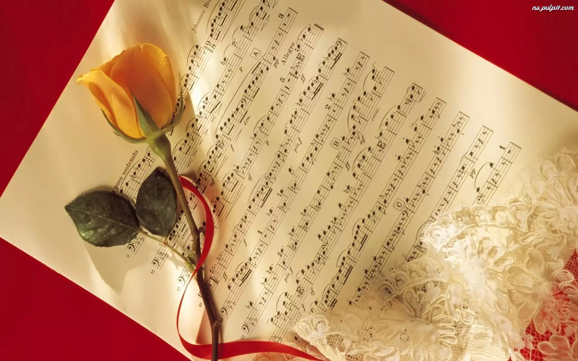 Żółta, Koronka, Róża, Nuty