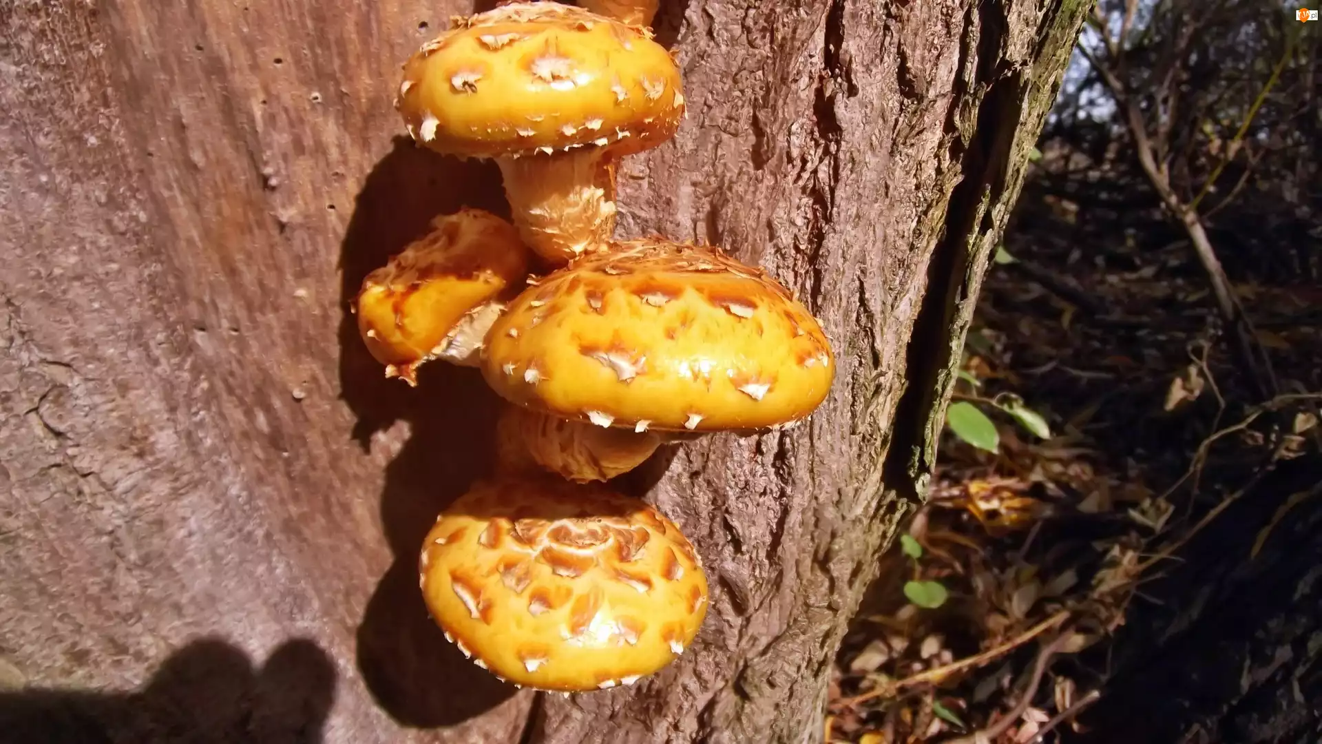 Żółte, Drzewa, Grzyby, Pień