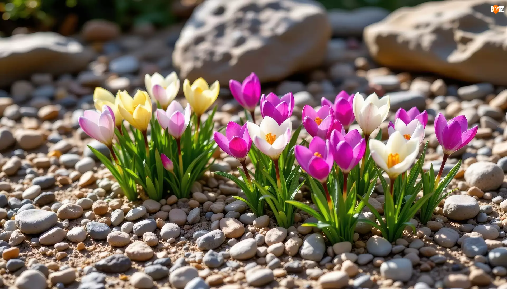 Żółte, Kamienie, Różowe, Białe, Krokusy