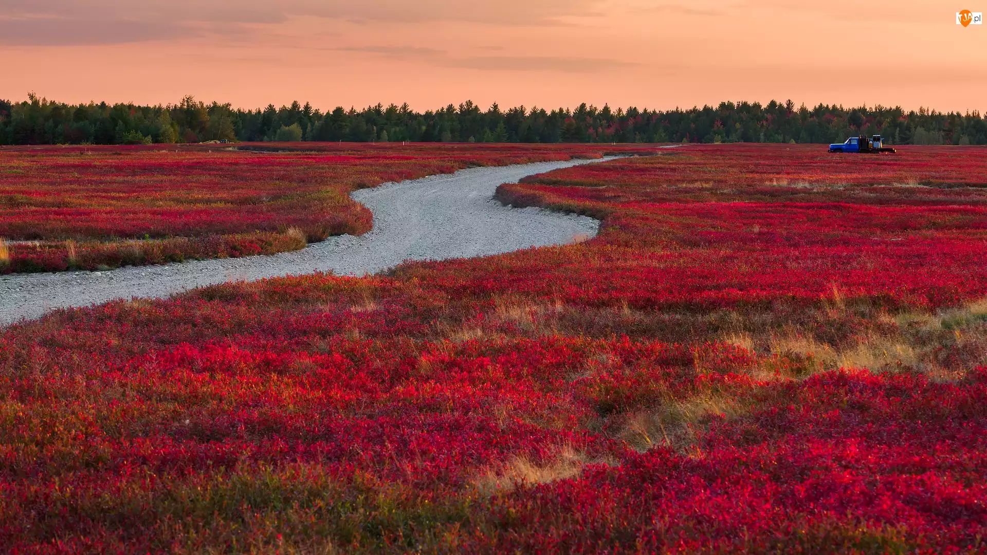 Stany Zjednoczone, Uprawa, Stan Maine, Samochód, Nowa Anglia, Borówki amerykańskie, Żwirowa, Pole, Droga