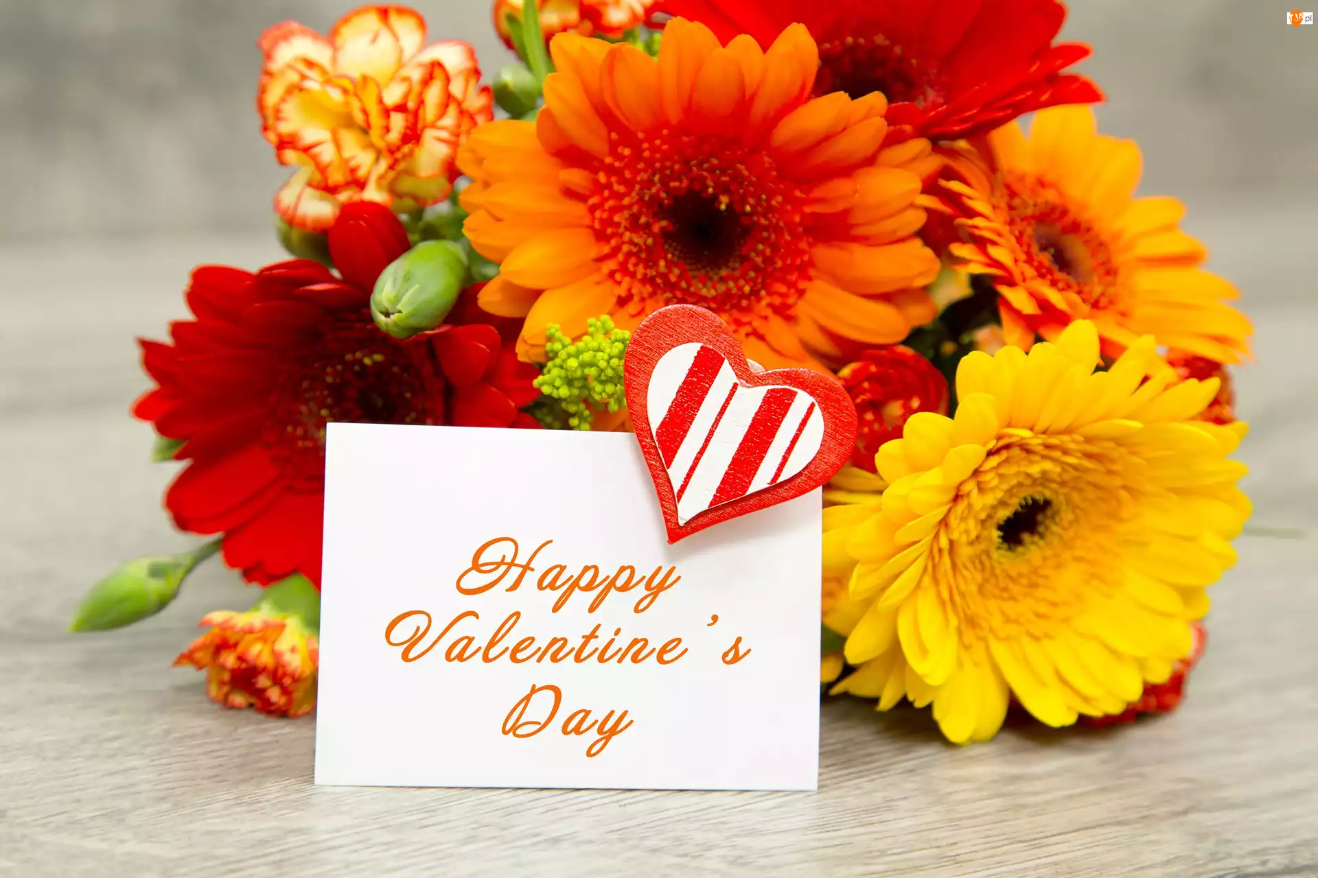 Życzenia walentynkowe z bukietem kolorowych gerbe