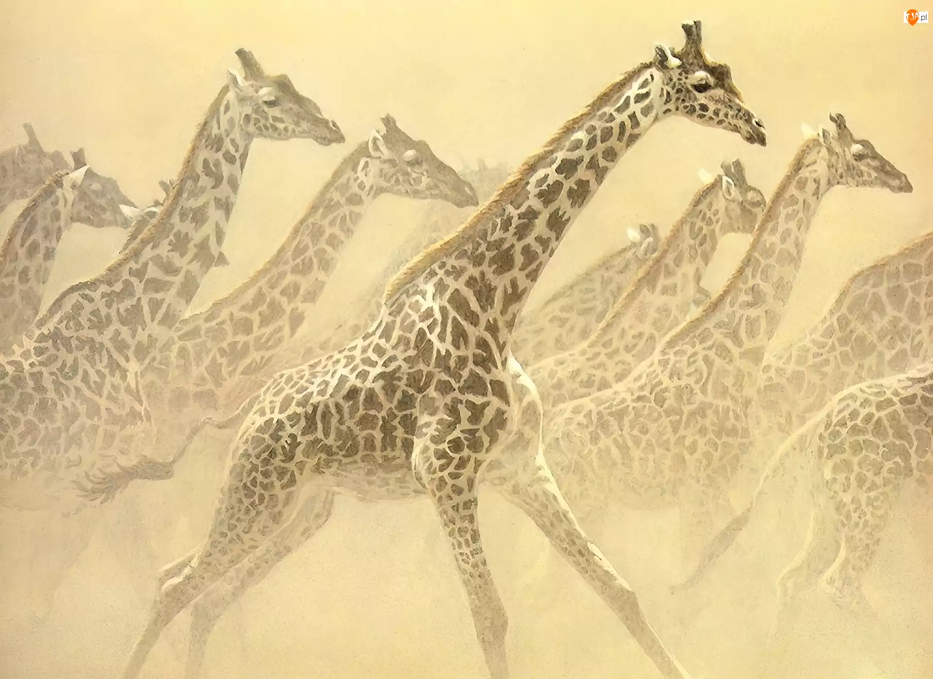 Żyraf, Biegnące, Stado