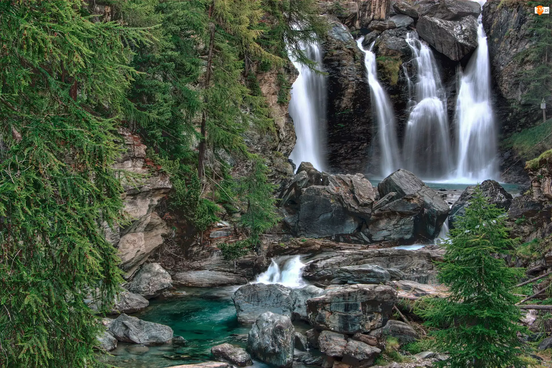Park Narodowy Gran Paradiso, Włochy, Wodospad, Skała, Dolina Aosty