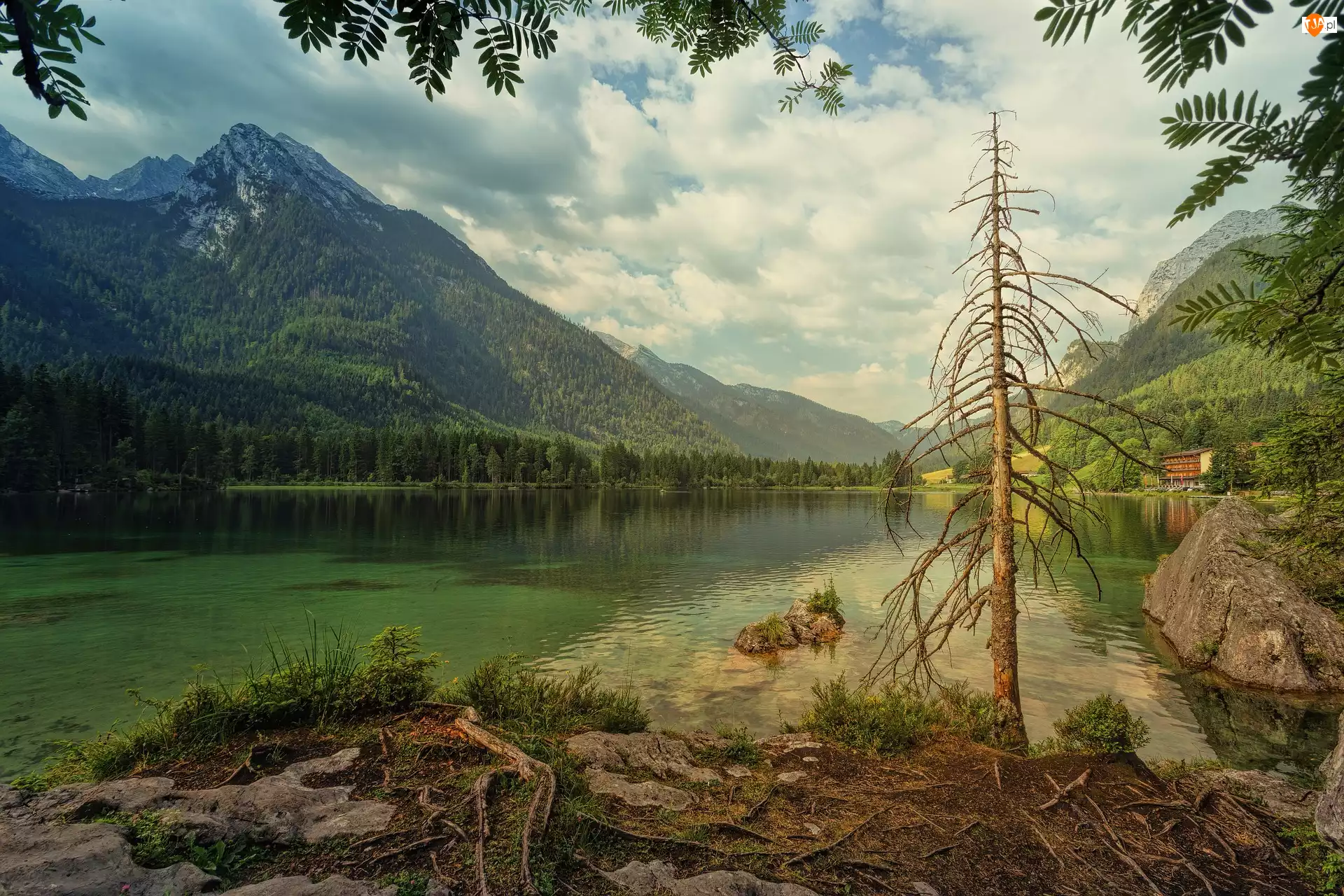 Jezioro Hintersee, Lasy, Niemcy, Góry Alpy, Bawaria, Gmina Ramsau bei Berchtesgaden, Drzewo