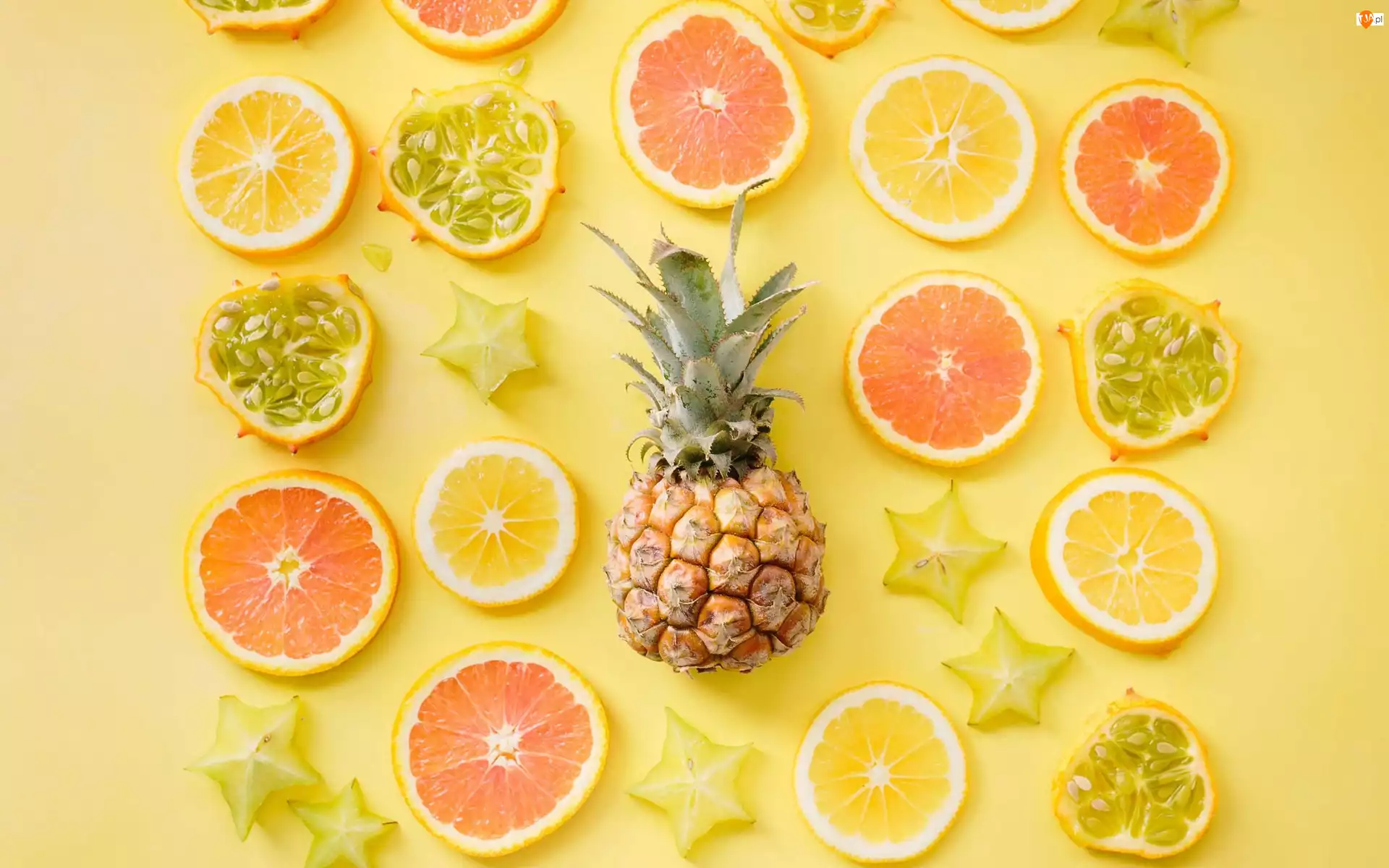 Ananas, Owoce, Plasterki, Cytrusy