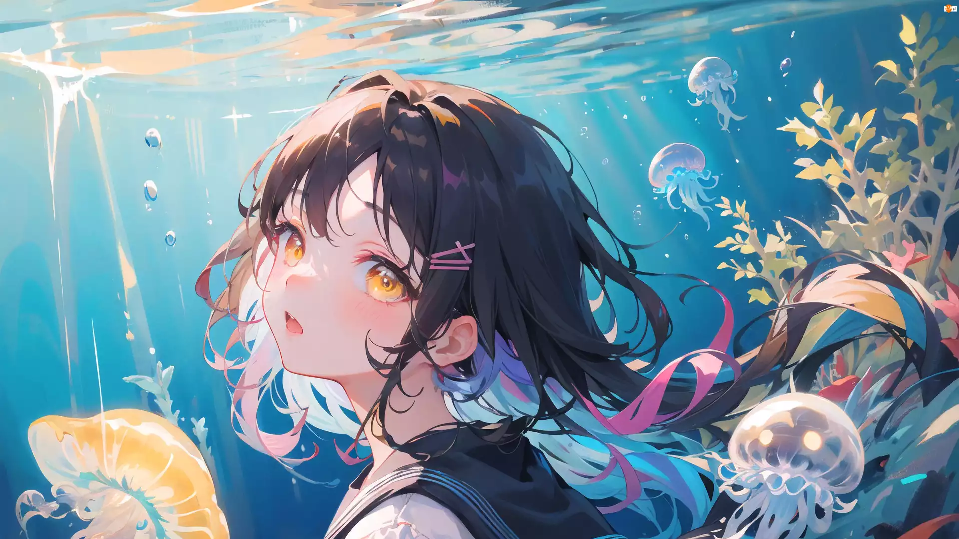 Anime, Dziewczyna, Spojrzenie, Meduzy