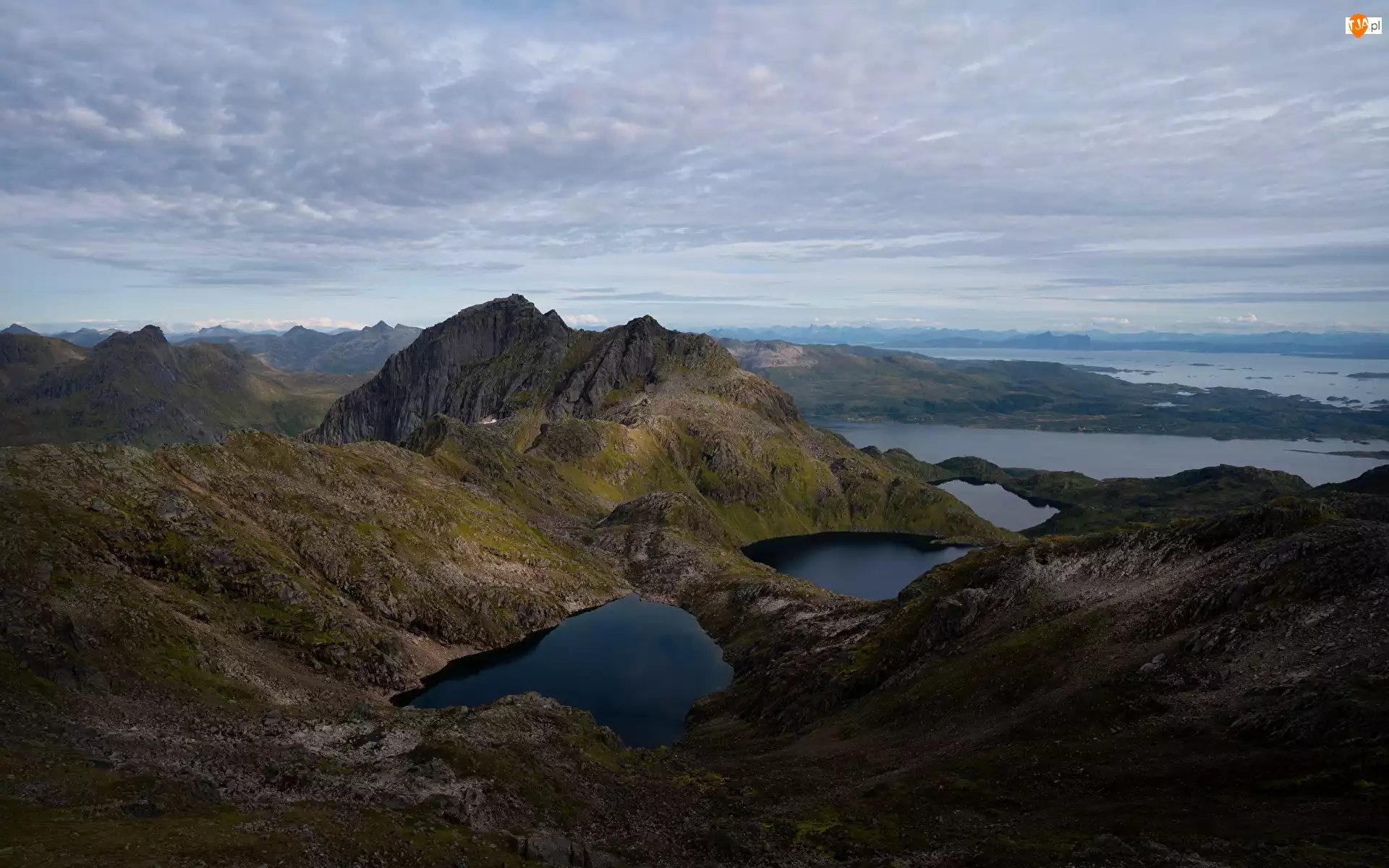 Góry, Niebo, Lofoty, Norwegia, Jeziora