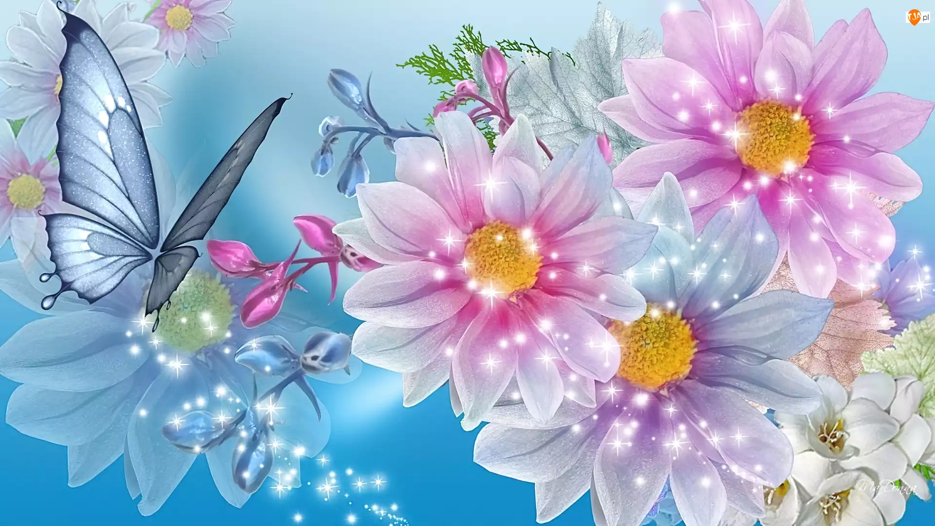 Art, Kwiaty, Światła, Refleksy, Motyle