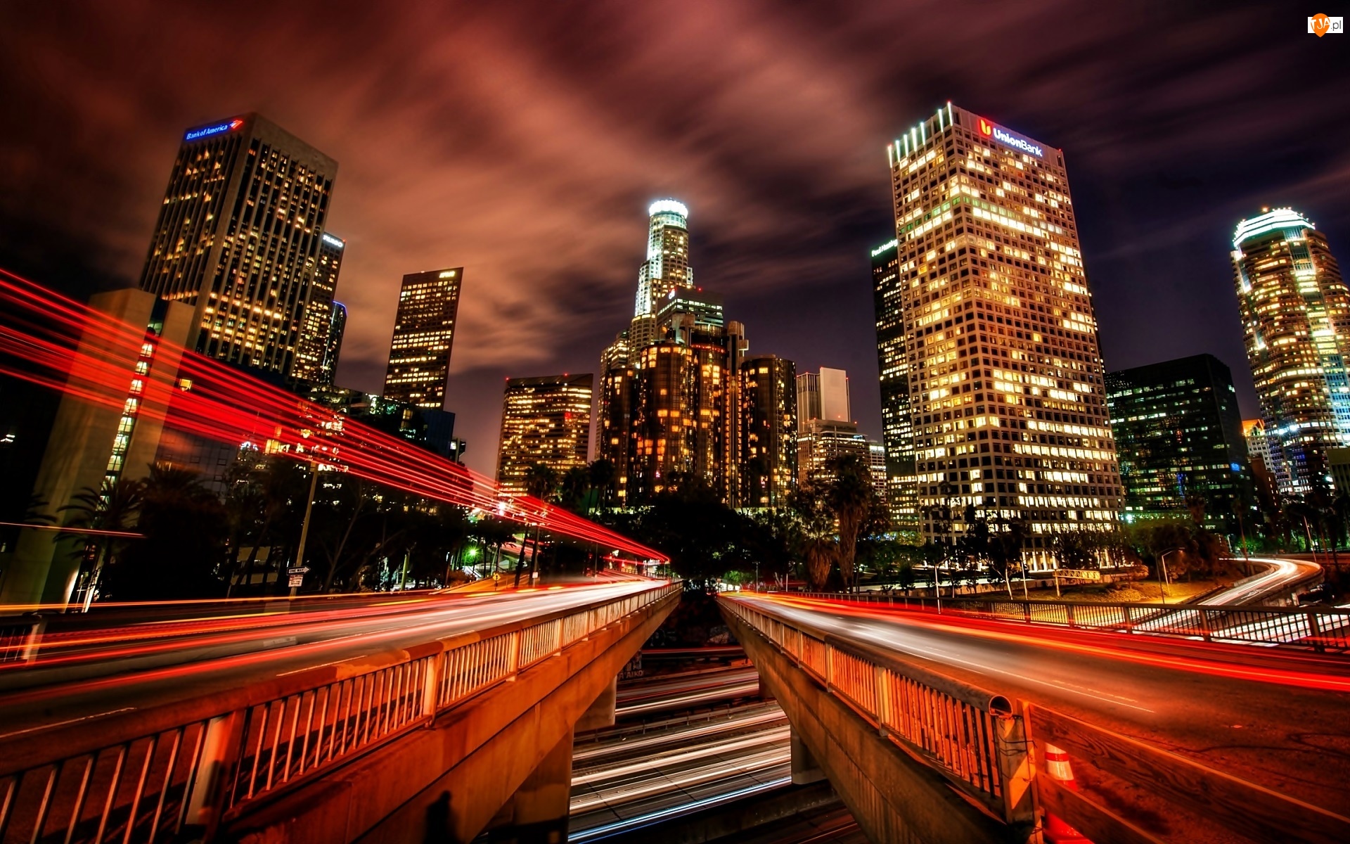 Arterie, Komunikacyjne, Chmur, Miasta, Drapacze, Nocą, Mosty, Fragment