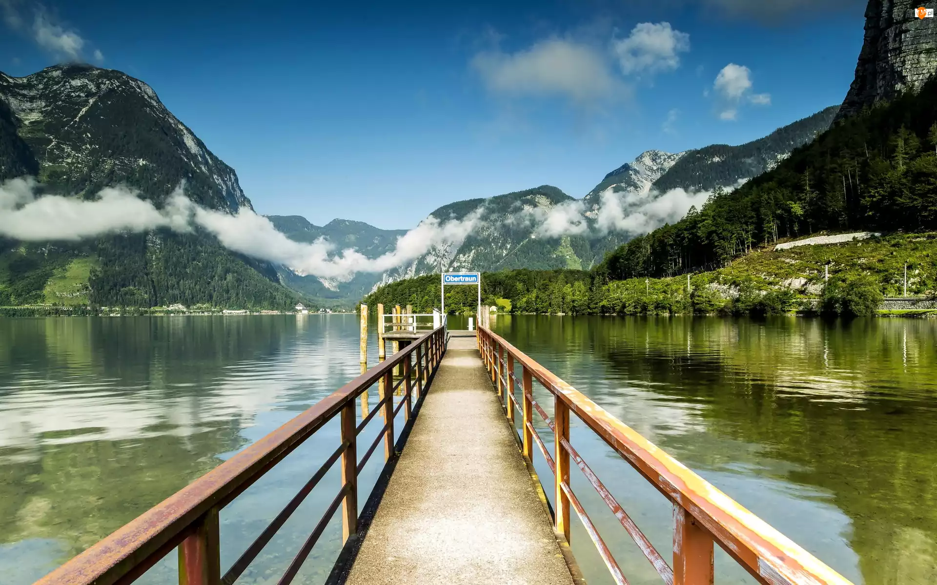 Austria, Molo, Hallstatt, Jezioro Hallstättersee, Góry