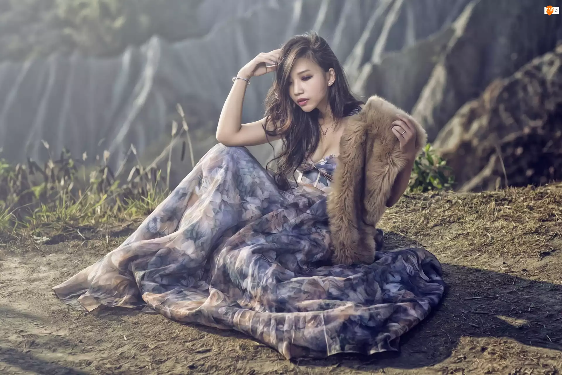 Sukienka, Azjatka, Zwiewna, Kobieta, Futro