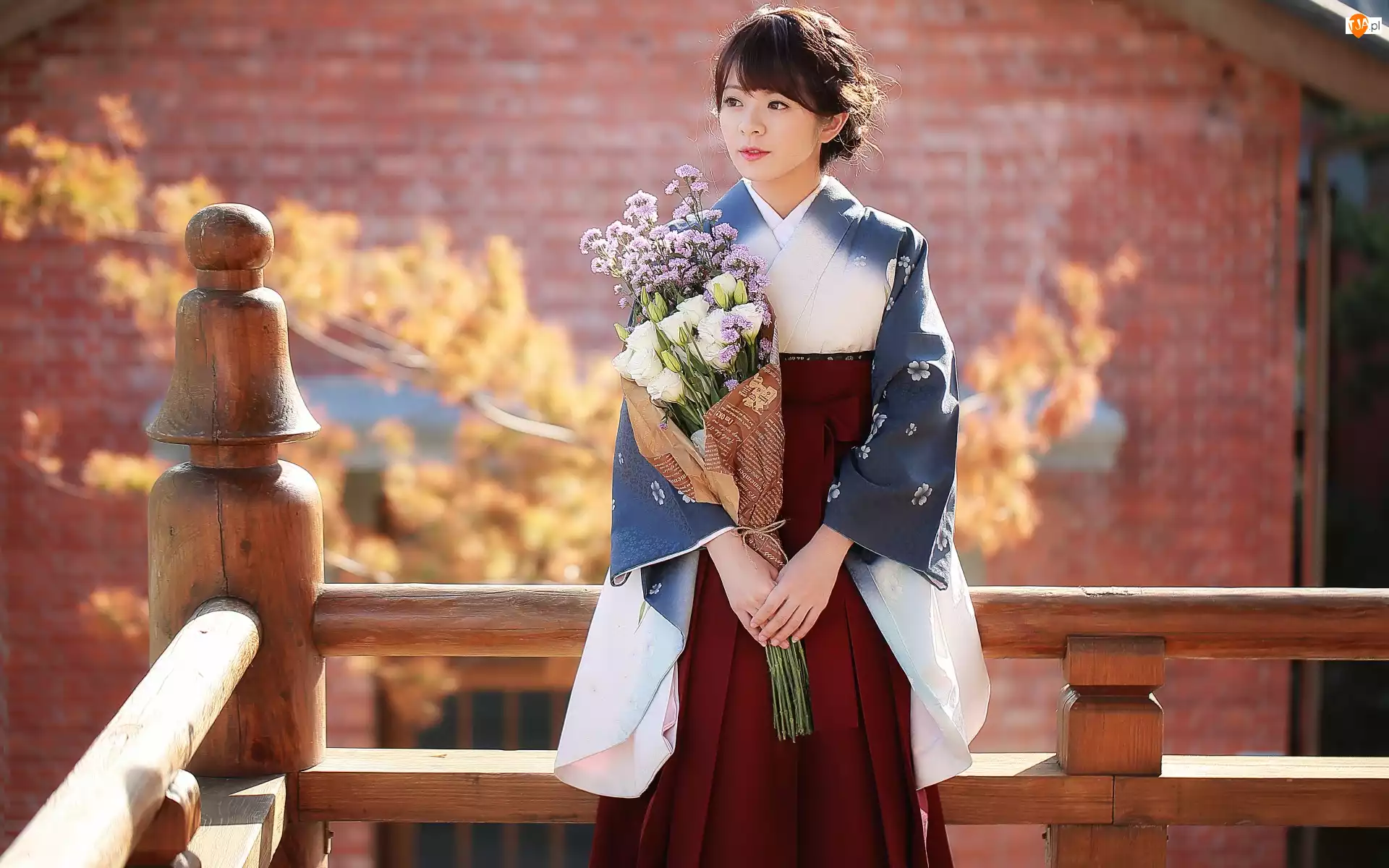 Bukiet, Kobieta, Azjatka, Kwiaty