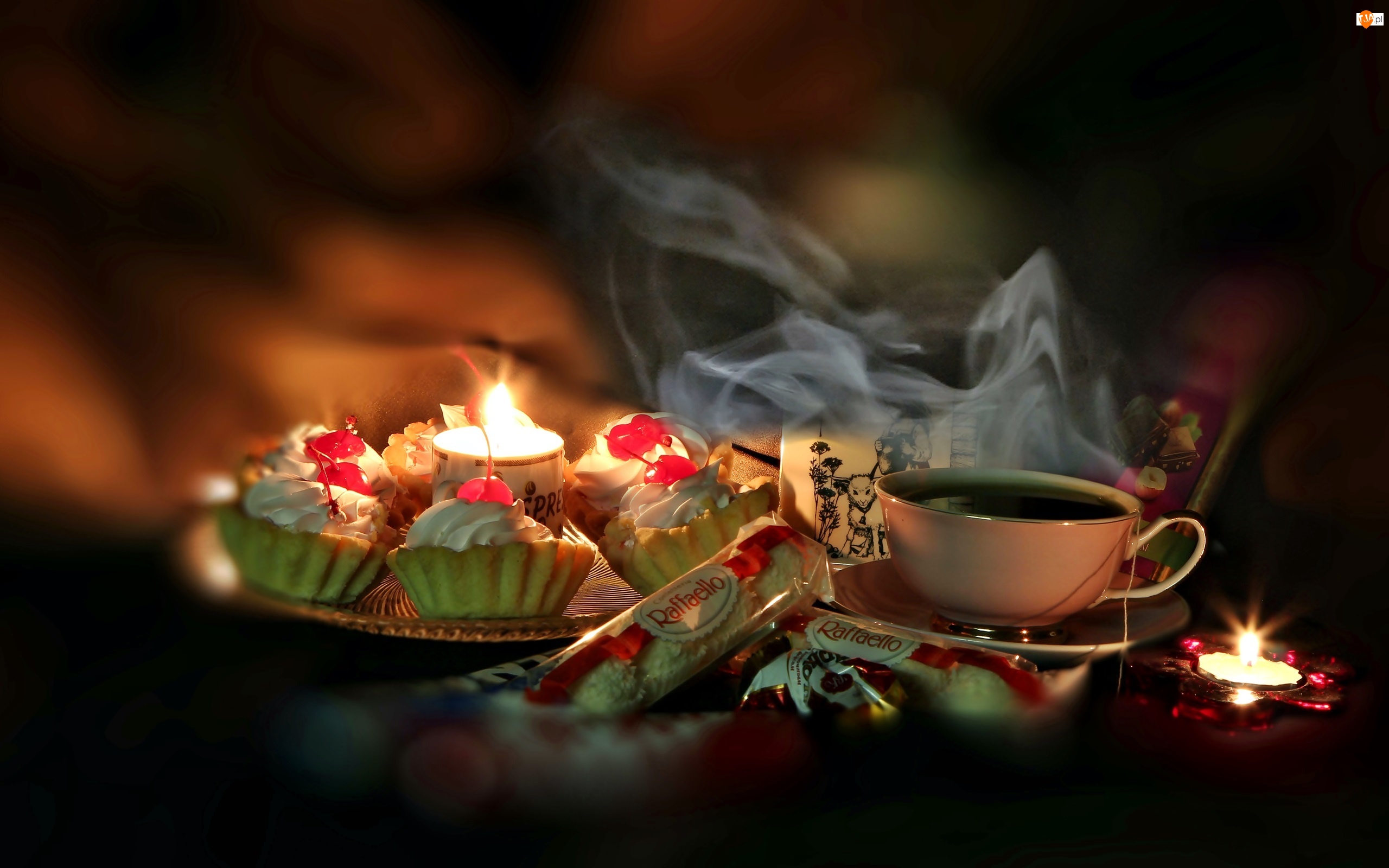 Herbata, Gorąca, Rafaello, Rozmycie, Babeczki, Świece