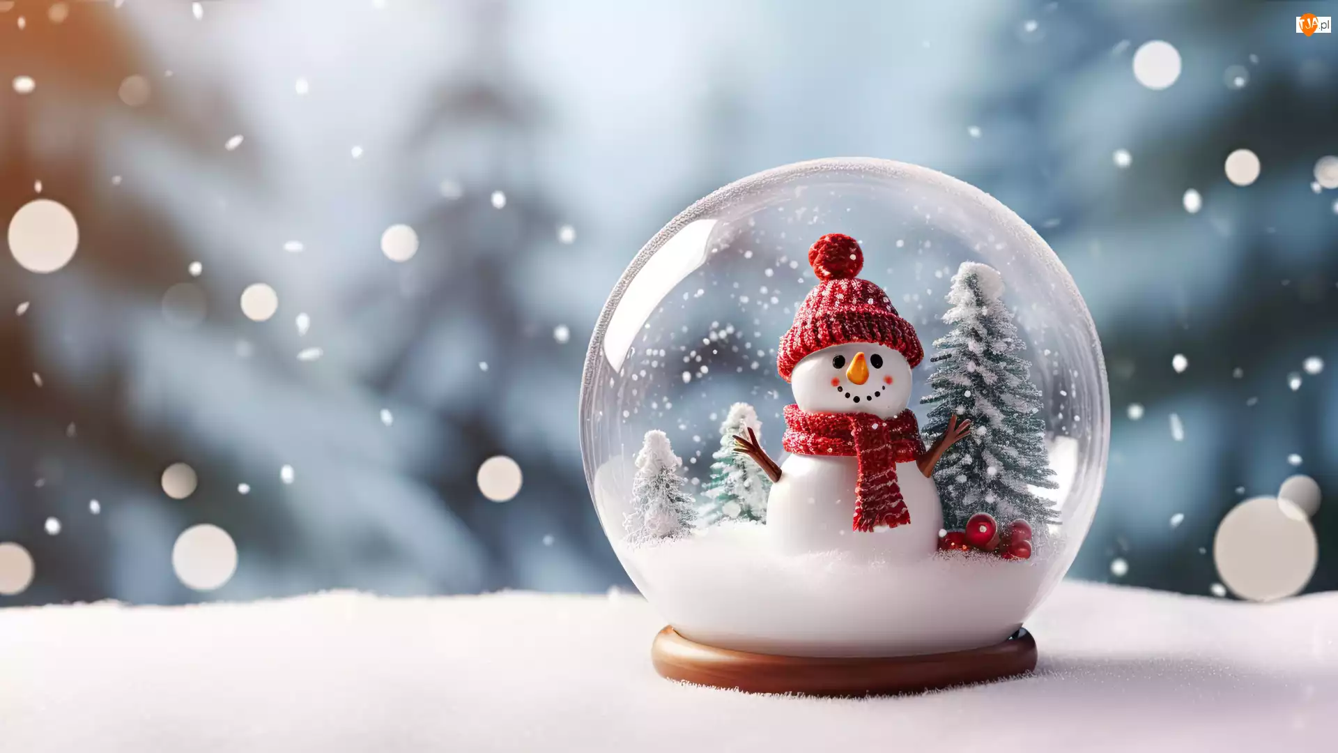 Bałwanek, Śnieg, Kula, Zima, Choinka
