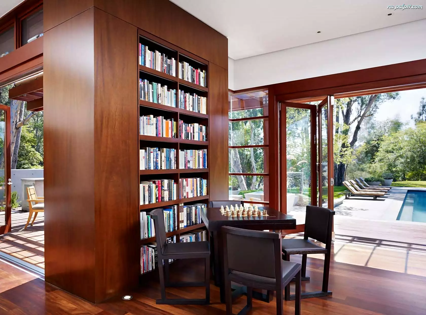 Basen, Dom, Biblioteka, Wnętrze, Ogród