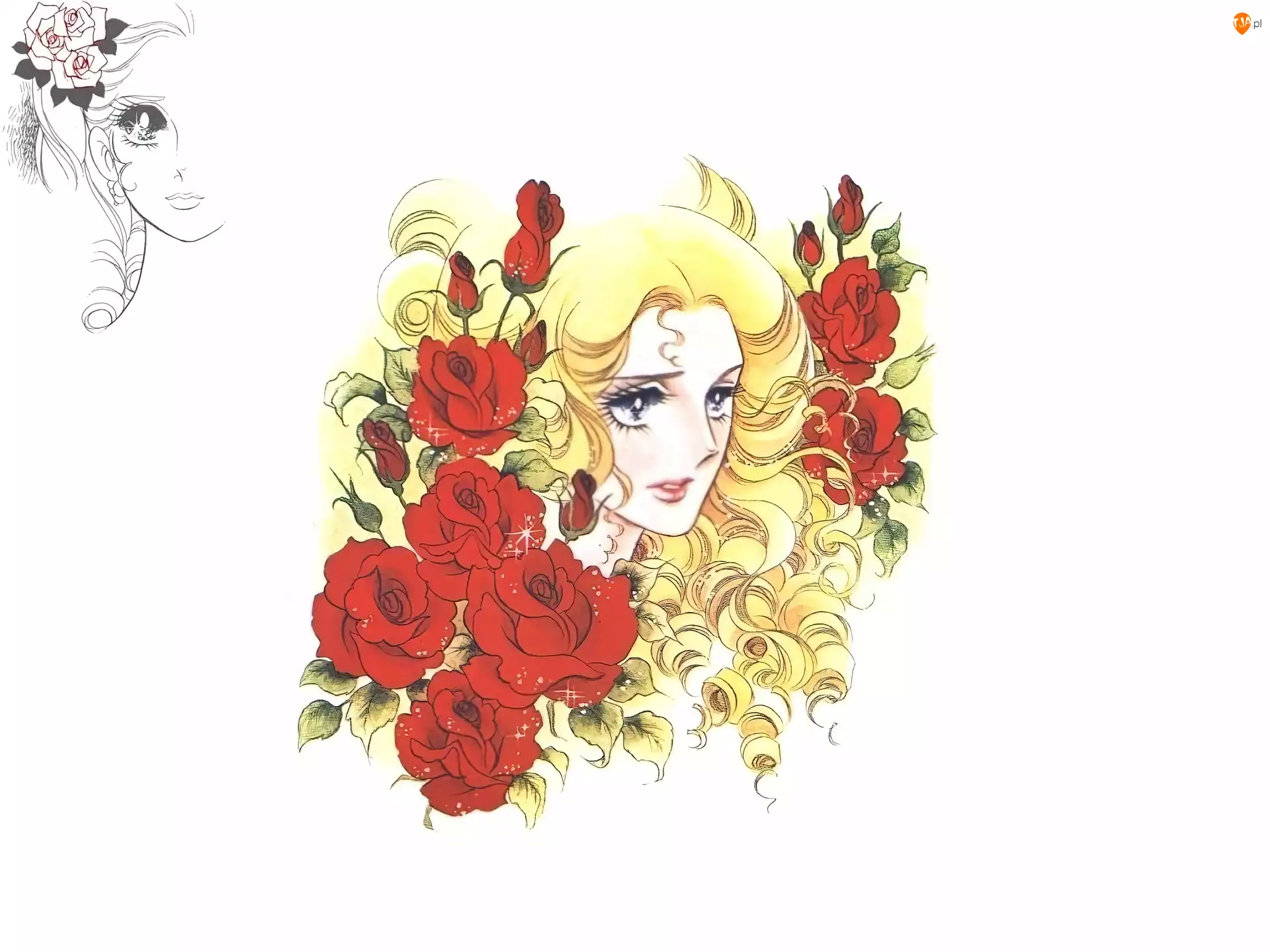 Berusaiyu No Bara, róże, kobieta, twarz