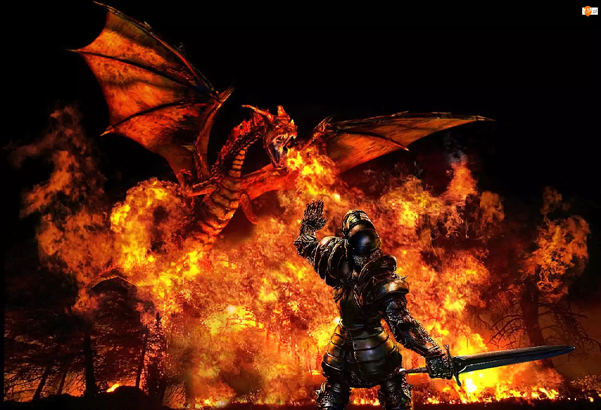 Bezimienny, Ogień, Gothic II, Zbroja, Smok, Mecz
