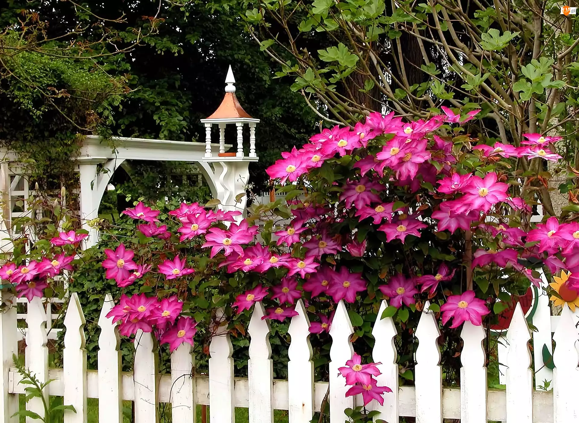 Biała, Płotek, Biały, Clematis, Budowla, Płot, Ogród