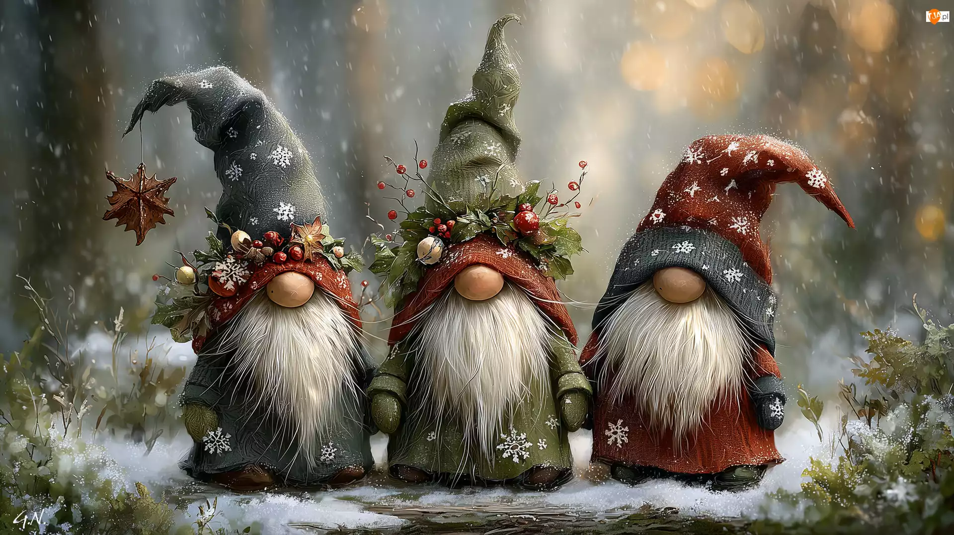 Białe, Grafika AI, Skrzaty, Trzy, Brody