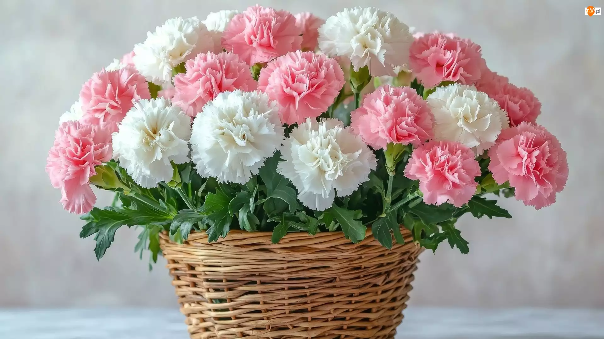 Białe, Kosz, Różowe, Kwiaty, Goździki