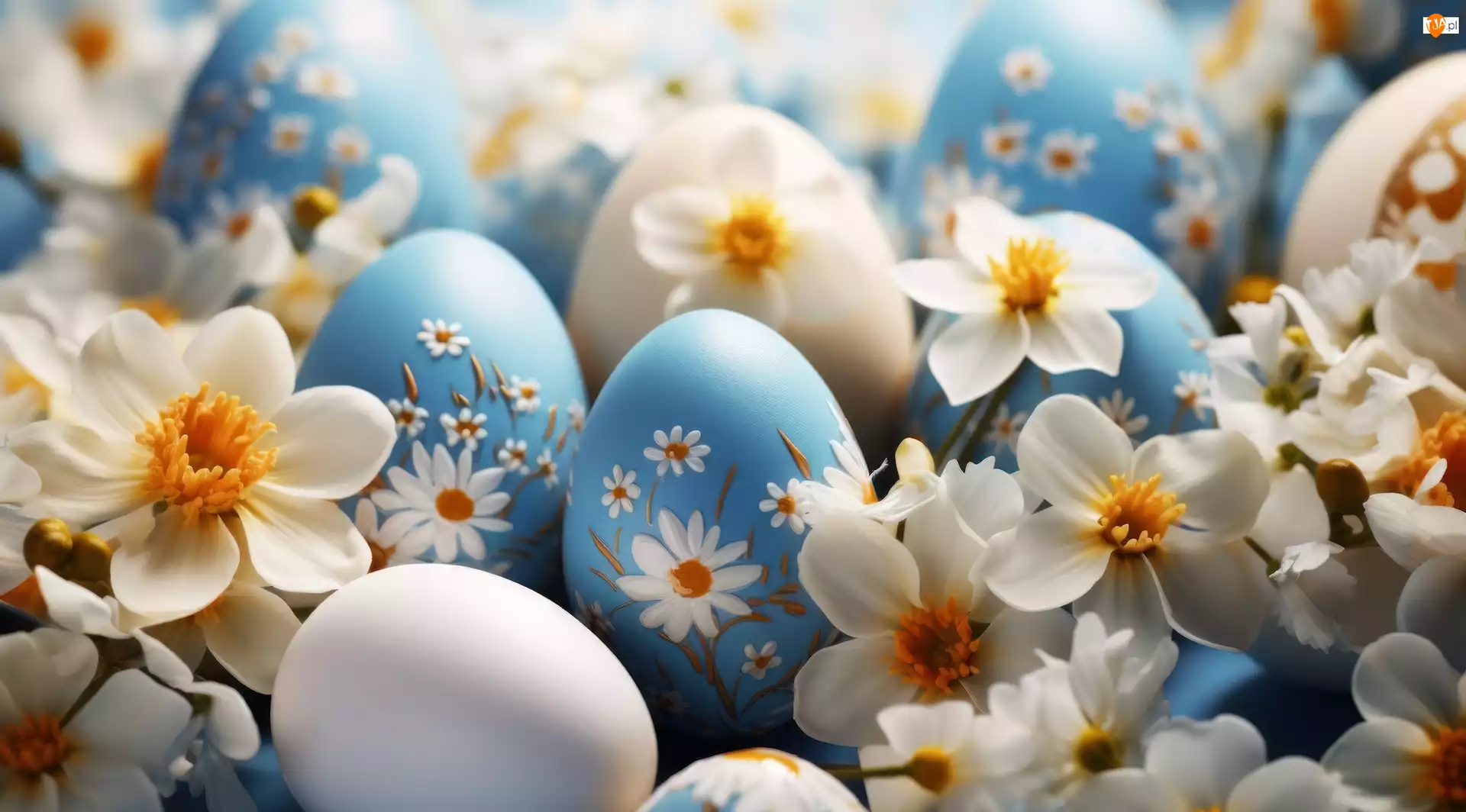 Białe, Wielkanoc, Pisanki, Kwiaty