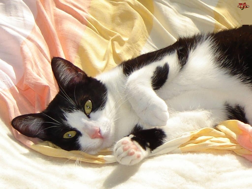 Biało, Pościel, Czarny, Kotek