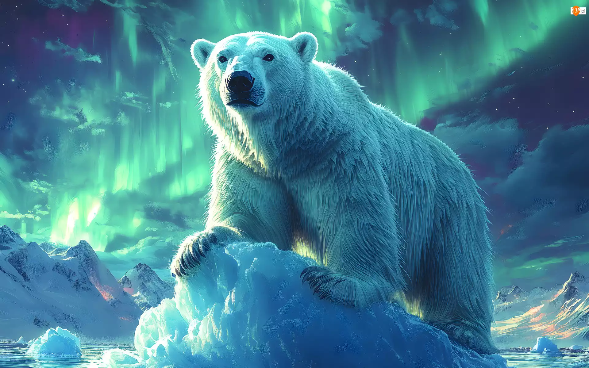 Zorza polarna, Grafika, Niedźwiedź, Polarny