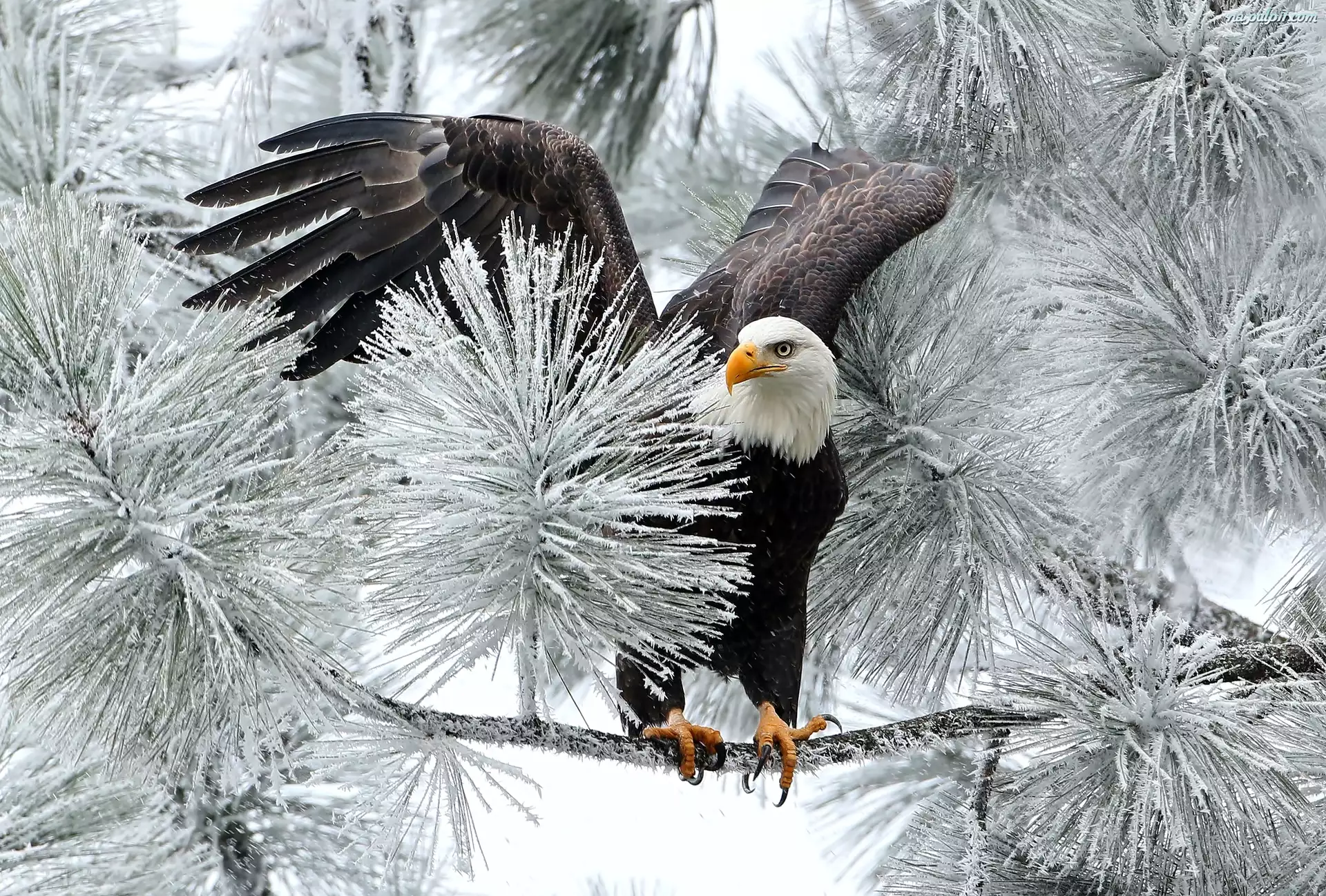 Bielik amerykański, Sosna, Ośnieżone, Drzewo