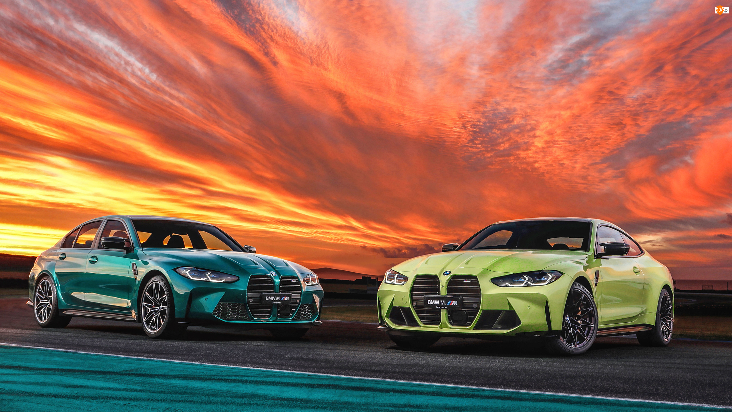Samochody, Zielone, 2021, Dwa, BMW M4 Competition Coupe G82, Limonkowe, BMW M3 Competition Sedan G80