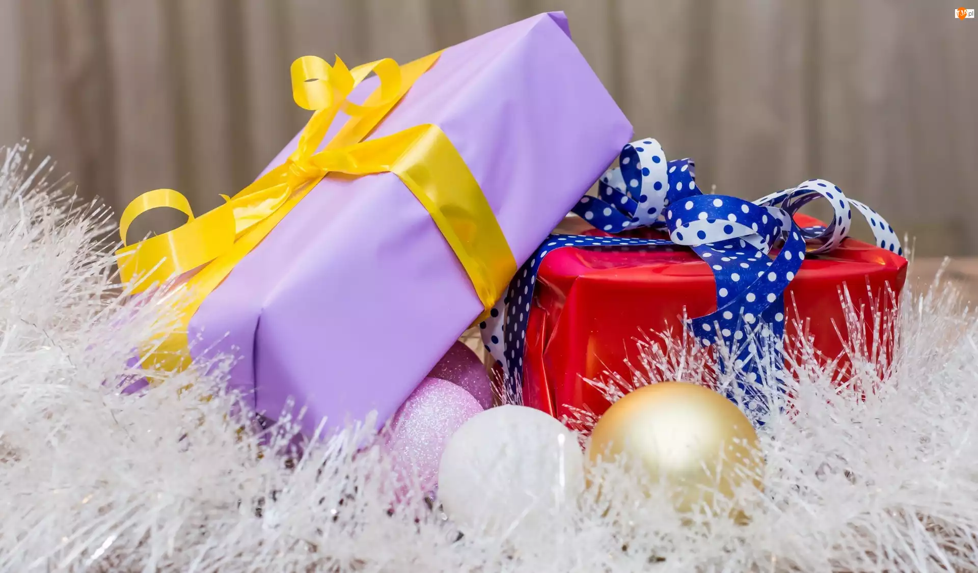 Prezenty, Bombki, Świąteczna, Kompozycja, Wstążki
