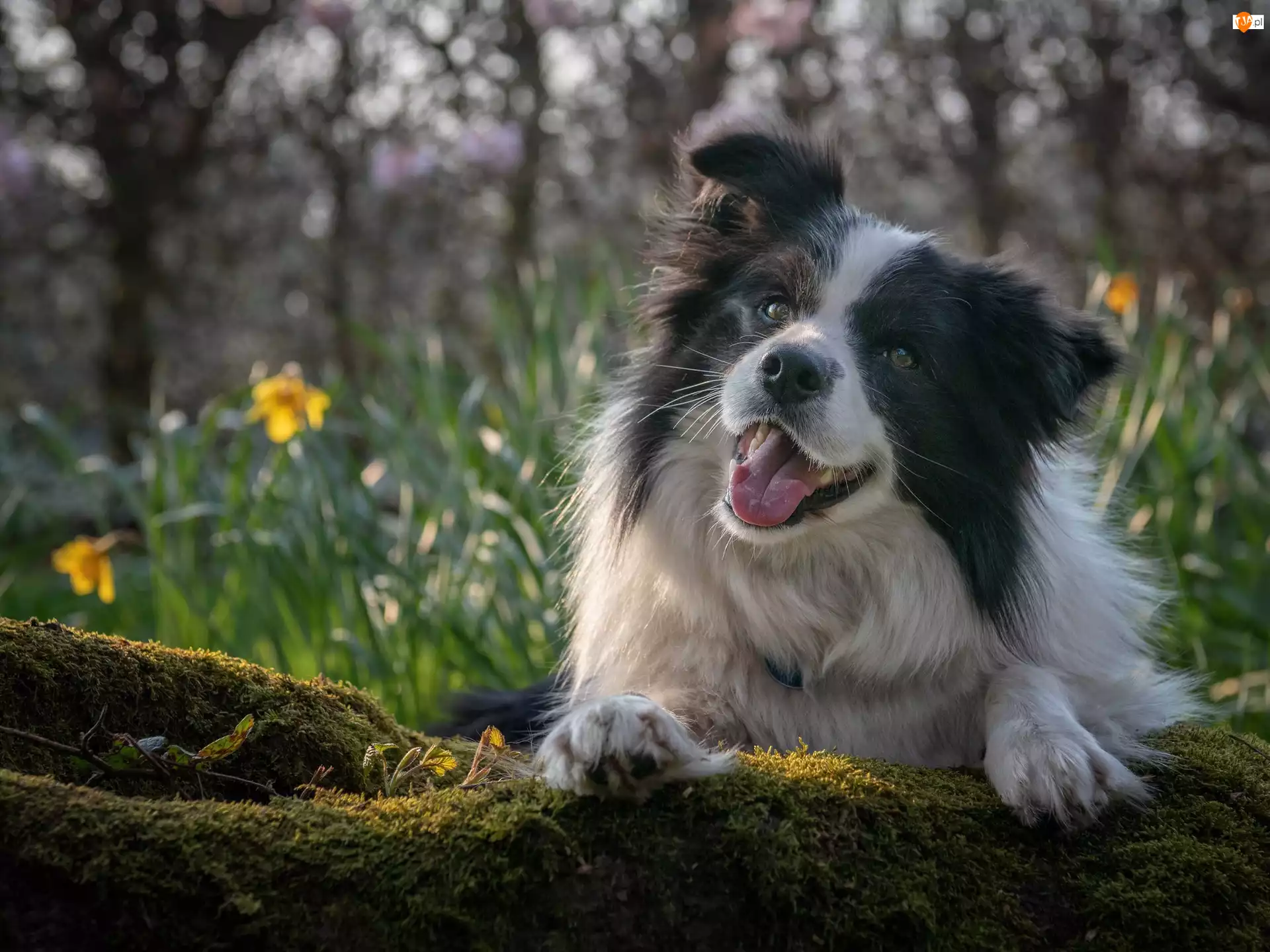 Border collie na mchu