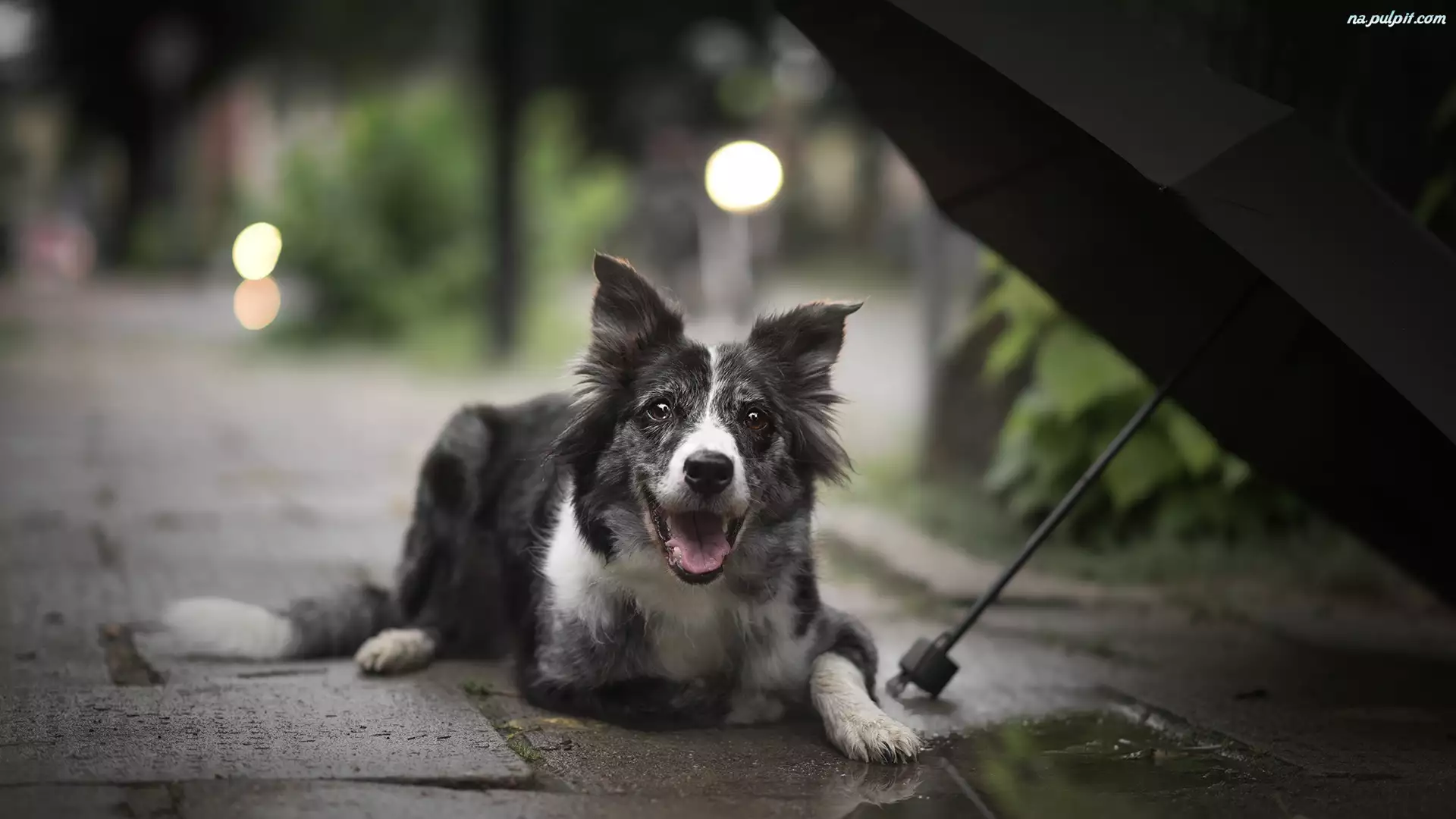 Parasol, Pies, Border collie, Chodnik