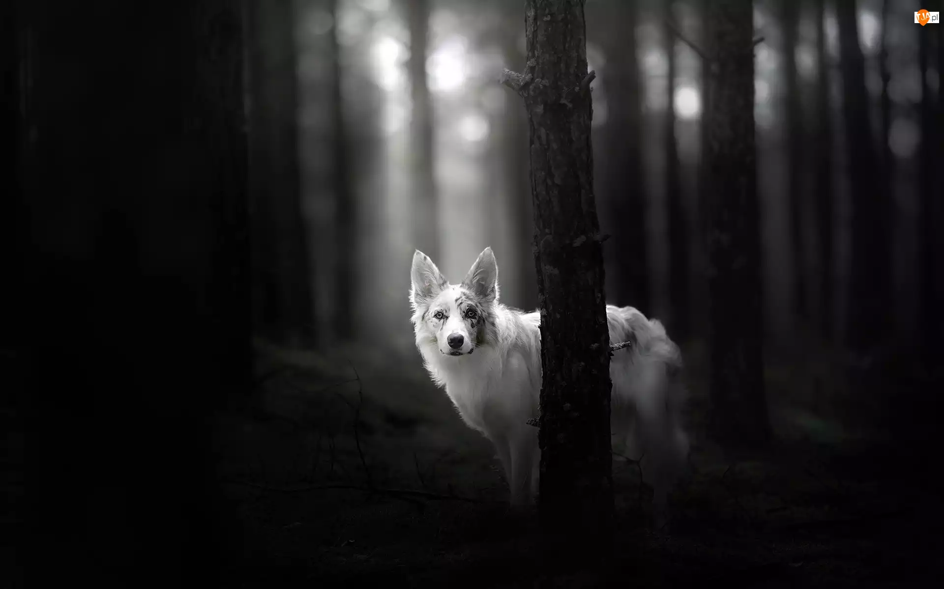 Border collie, Czarno-Białe, Drzewa, Las