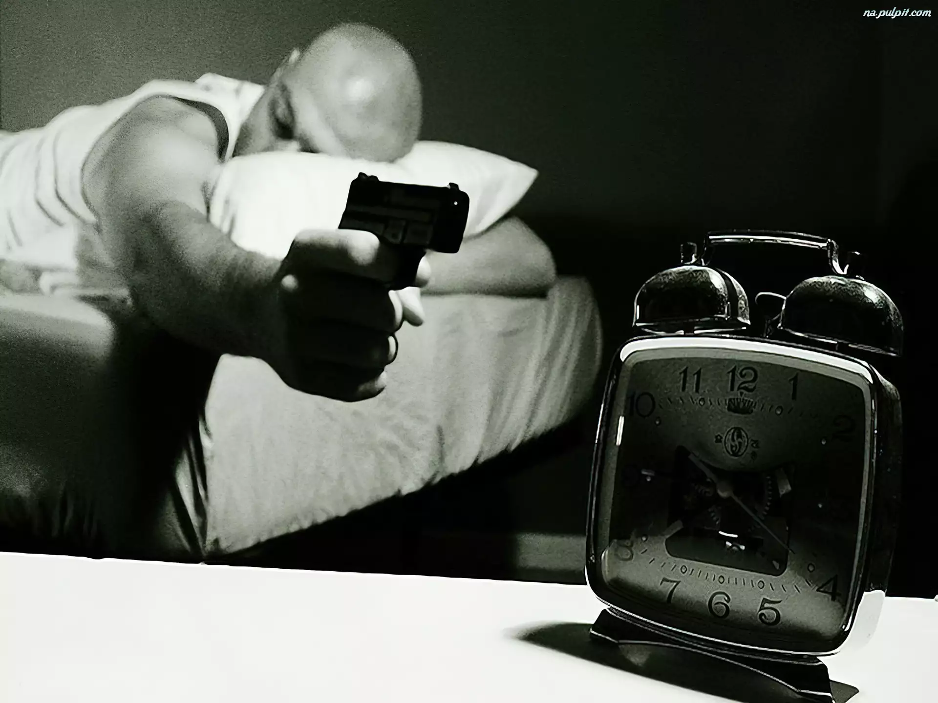 Budzik, Mężczyzna, Broń