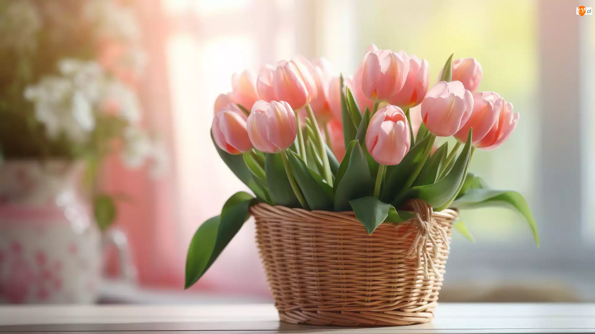 Bukiet, Kosz, Tulipany, Różowe, Kompozycja