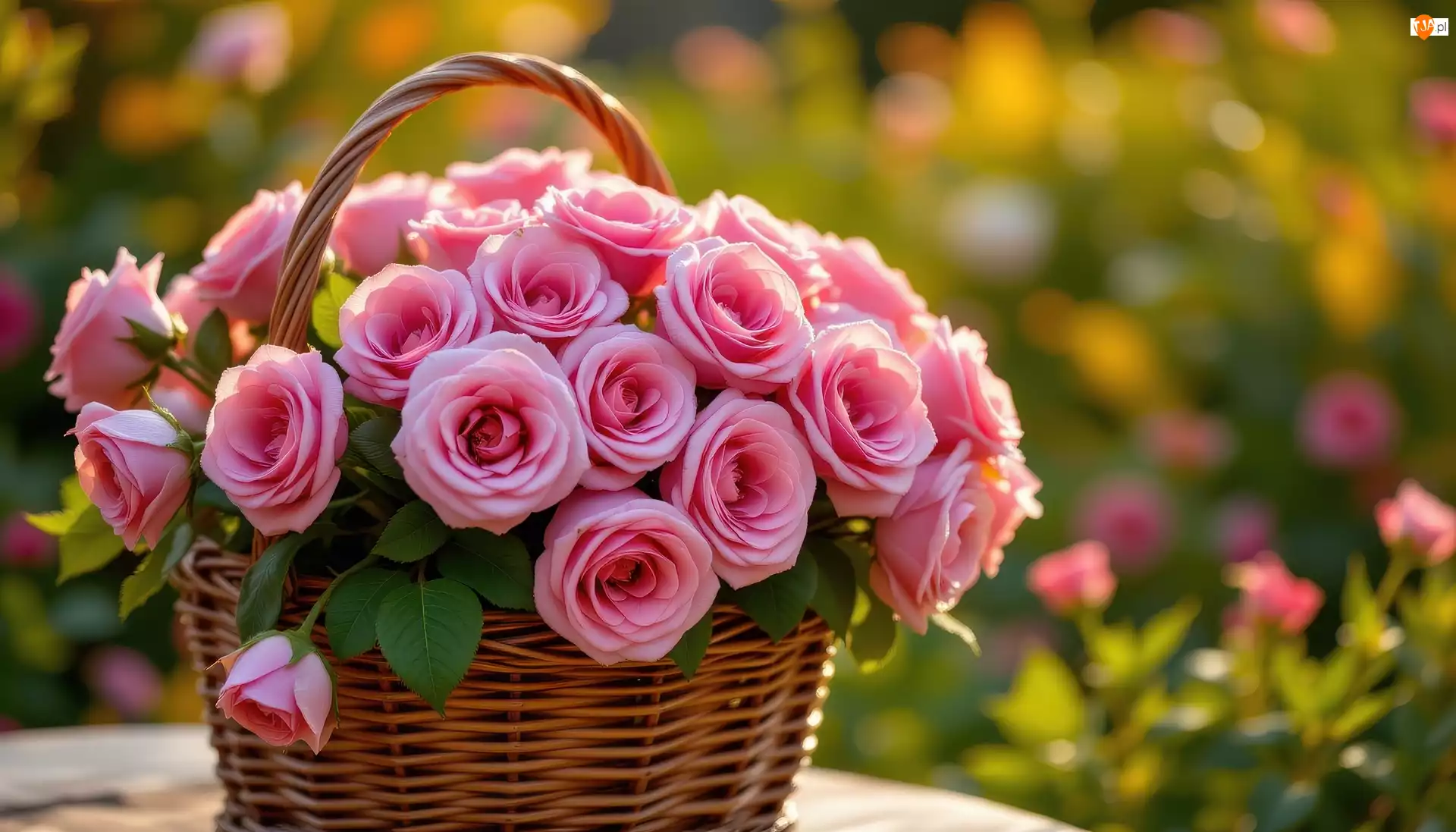 Tagi: Bukiet Koszyk Róże Różowe Wiklinowy