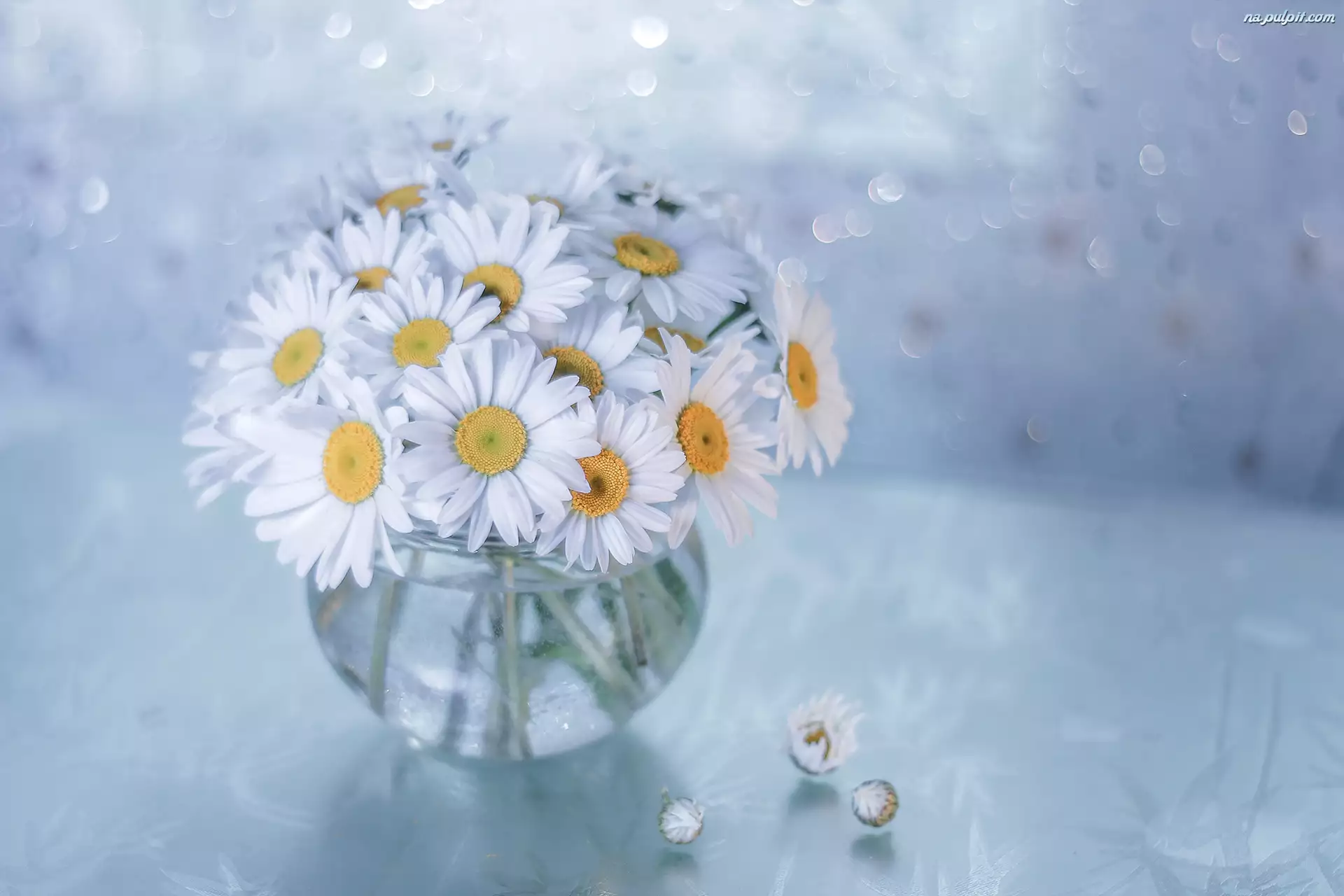 Kwiaty, Wazonik, Białe, Margerytki, Bukiet