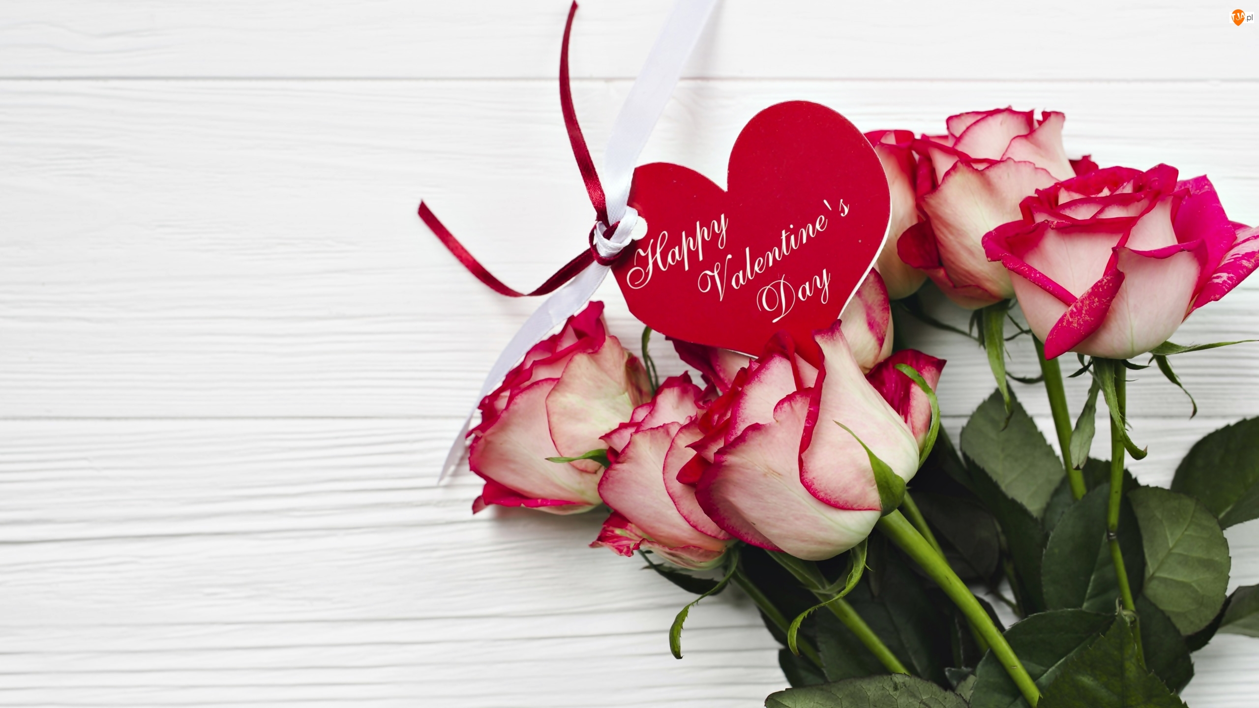 Bukiet, Serce, Walentynki, Róże, Deski, Listki, Wstążeczka