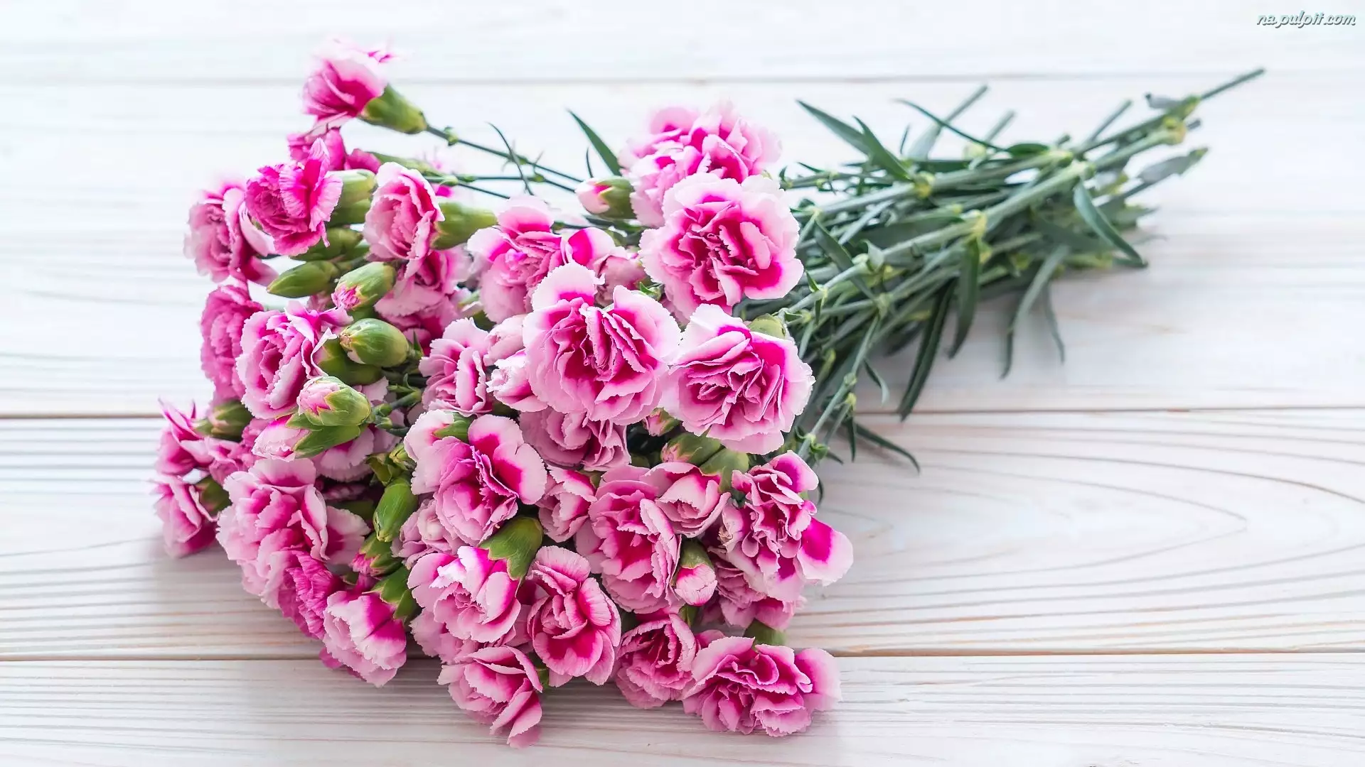 Różowe, Deski, Kwiatów, Bukiet, Goździki