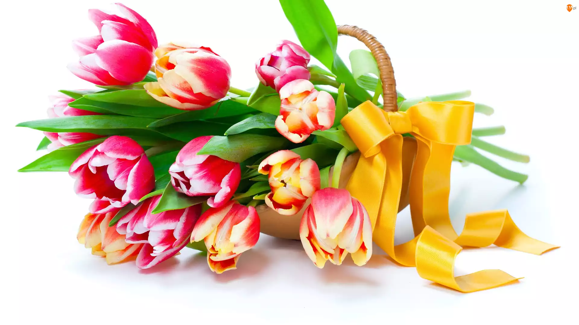 Bukiet, Wstążka, Tulipanów, Kosz