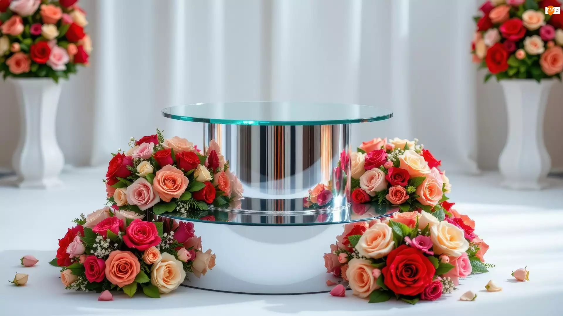 Bukiety, Róże, Podium, Szklane, Kolorowe