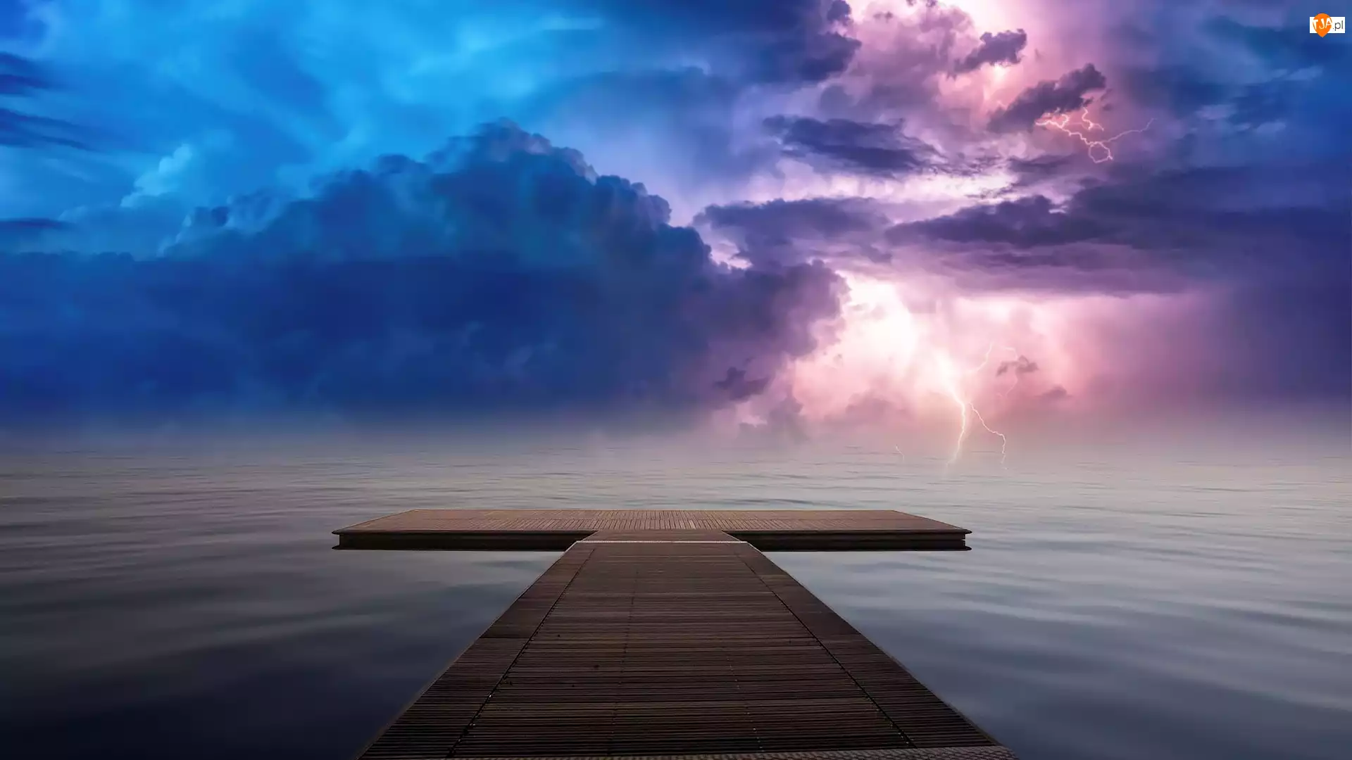 Pomost, Morze, Chmury, 2D, Niebo, Pioruny