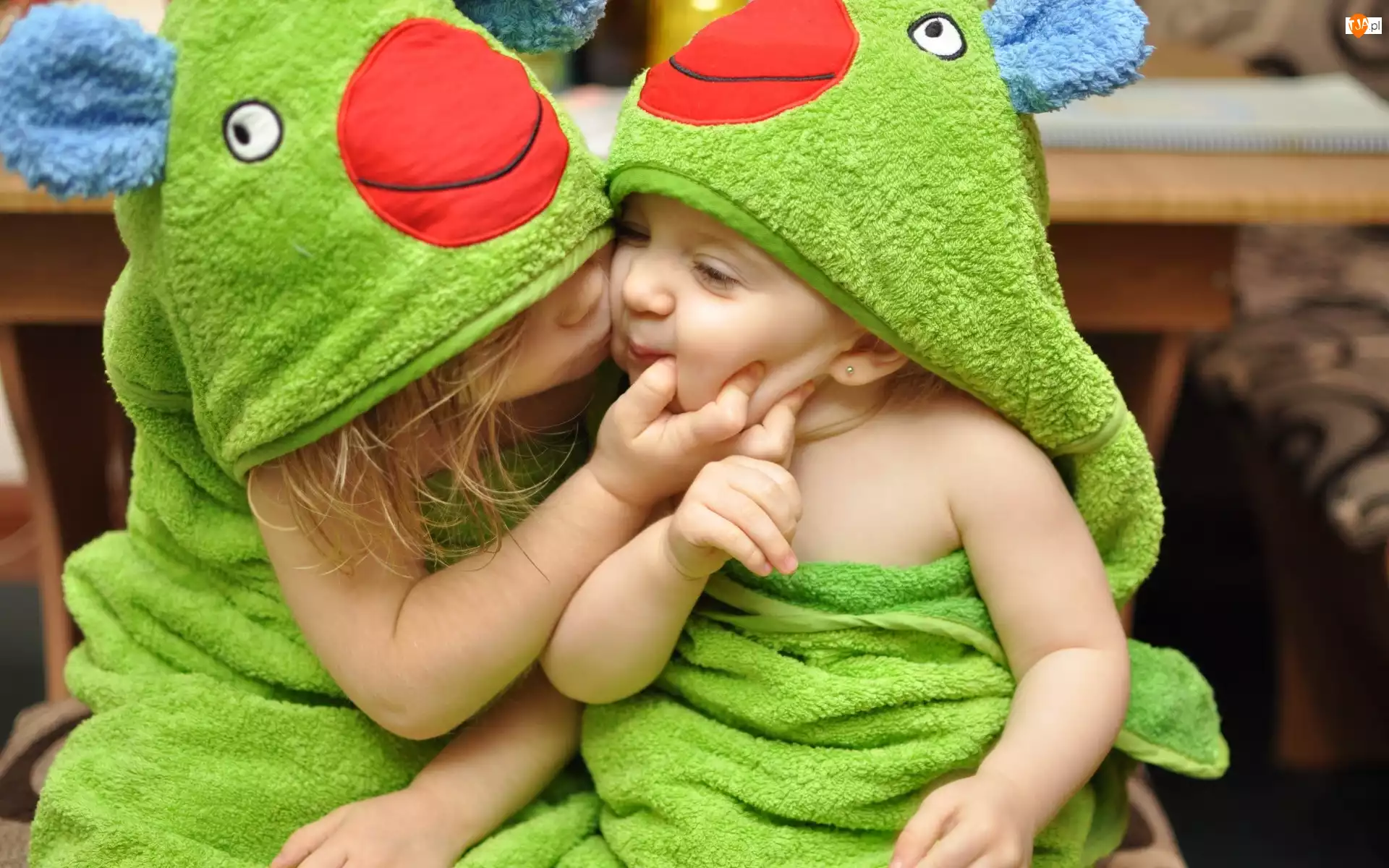 Buziak, Dwoje, Zielone, Dzieci, Ręczniki