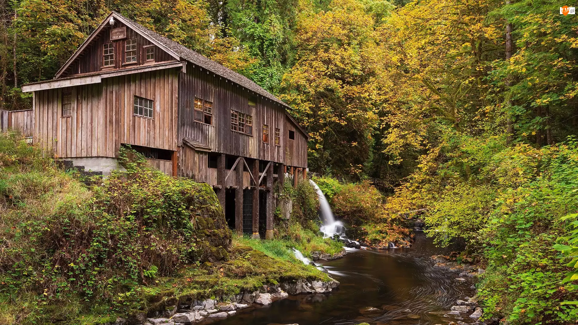 Cedar Creek Grist Mill, Młyn, Drzewa, Stany Zjednoczone, Rzeka, Woodland