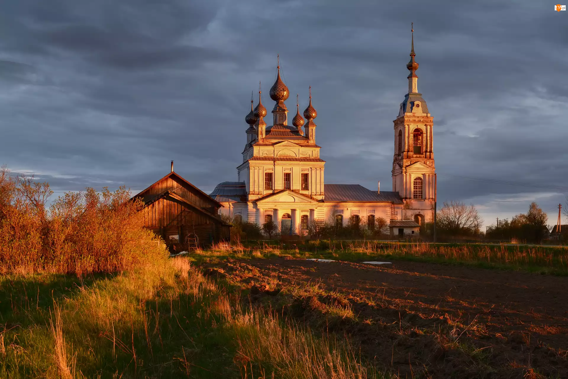 Jesień, Pole, Rosja, Cerkiew, Obwód jarosławski, Savinskoye, Drzewa