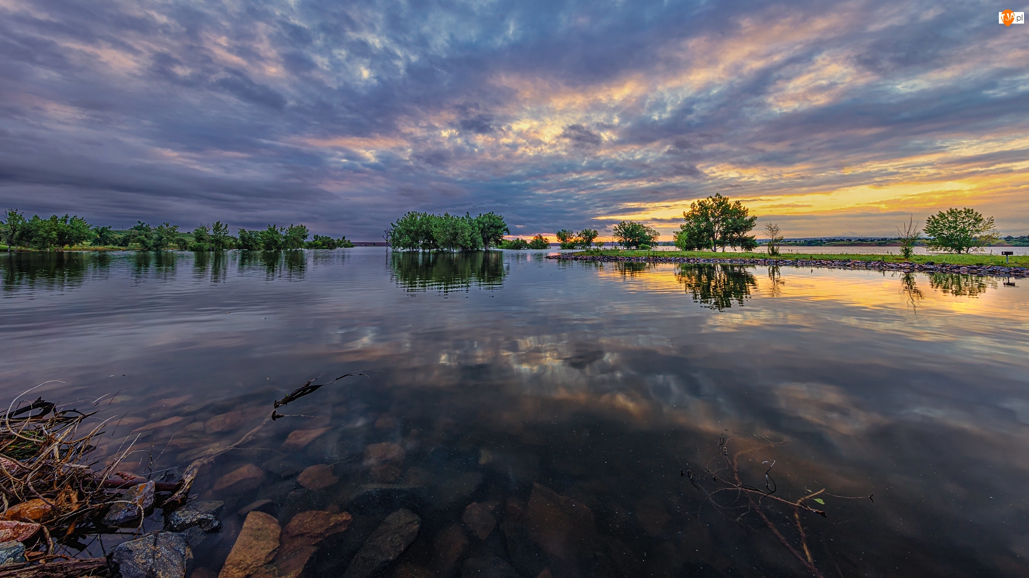Chatfield Lake, Stany Zjednoczone, Chatfield State Park, Chmury, Kolorado, Jezioro, Drzewa, Park stanowy