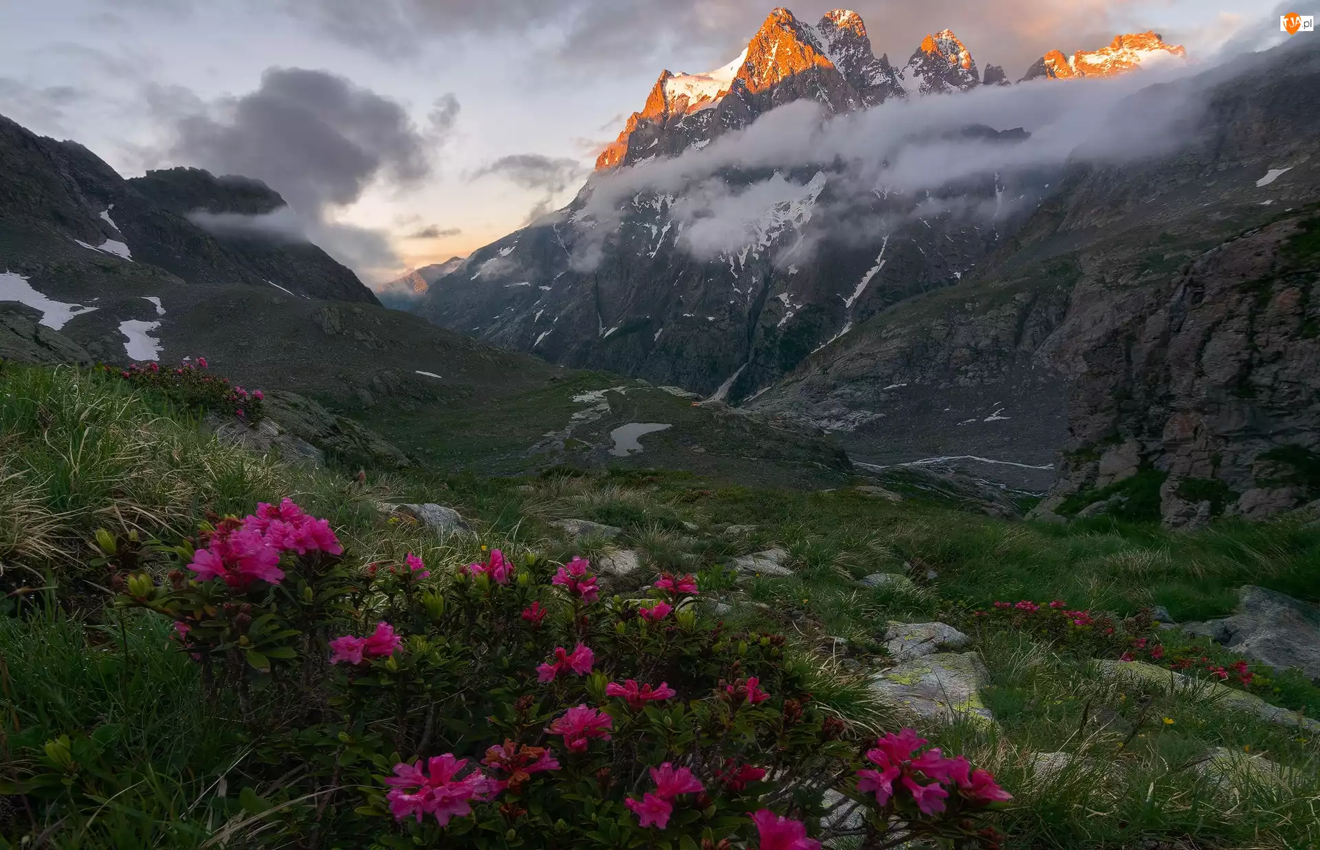 Chmury, Góry, Kwiaty, Różanecznik